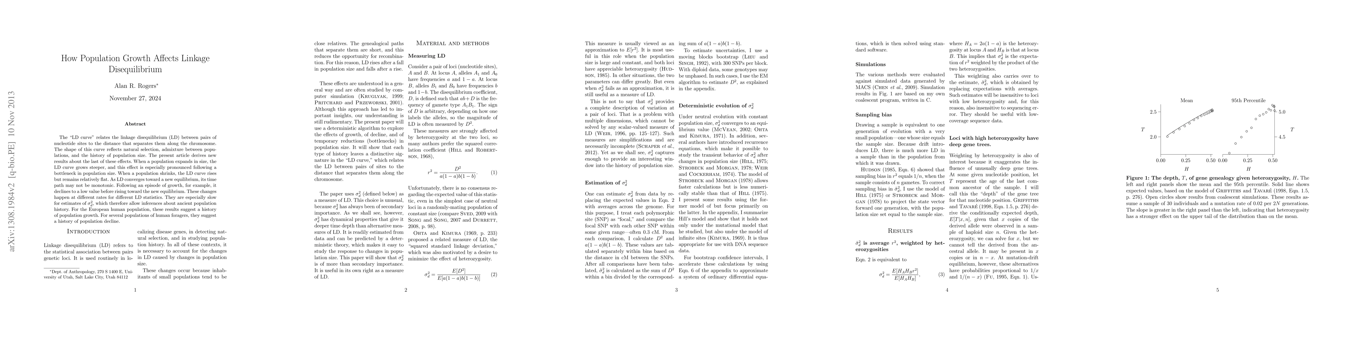 Linkage disequilibrium (LD) is often summarized using the "LD curve," which relates the LD between pairs of sites to the distance that separates them along the chromosome. This paper shows how the LD curve responds to changes in population size. An expansion of population size generates an LD curve that declines steeply, especially if that expansion has followed a bottleneck. A reduction in size generates an LD curve that is high but relatively flat. In European data, the curve is steep, suggesting a history of population expansion. These conclusions emerge from the study of $\sigma_d^2$, a measure of LD that has never played a central role. It has been seen merely as an approximation to another measure, $r^2$. Yet $\sigma_d^2$ has different dynamical behavior and provides deeper time depth. Furthermore, it is easily estimated from data and can be predicted from population history using a fast, deterministic algorithm.