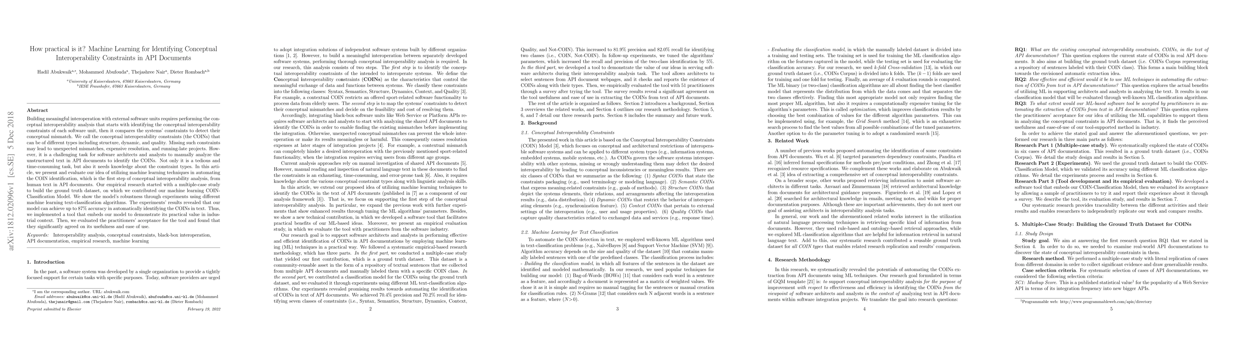 Researchers developed a machine learning model to automatically identify conceptual interoperability constraints in API documents, achieving up to 87% accuracy, and created a tool for practical use in the industry.