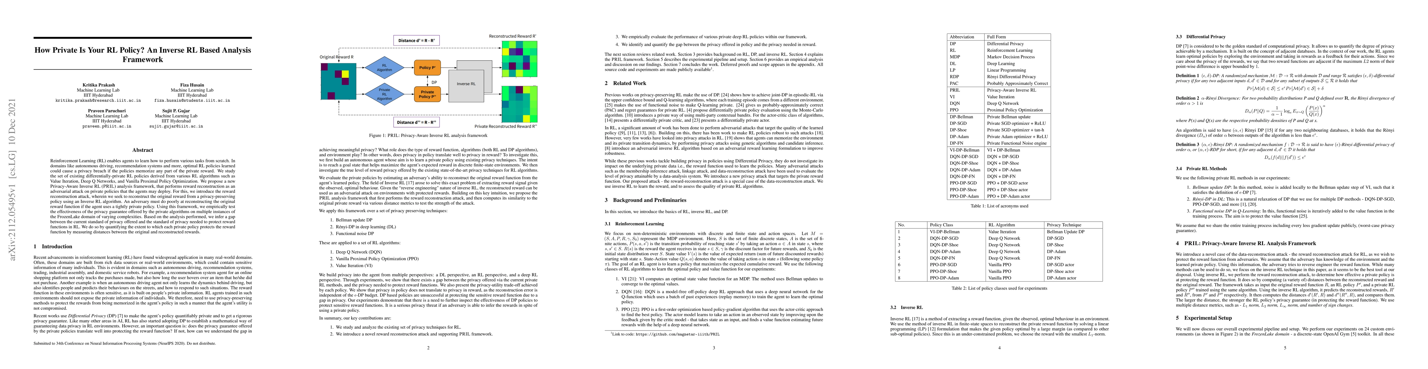 This paper proposes a new framework to analyze the privacy of Reinforcement Learning (RL) policies, showing that existing private algorithms may not provide sufficient protection for sensitive rewards.
