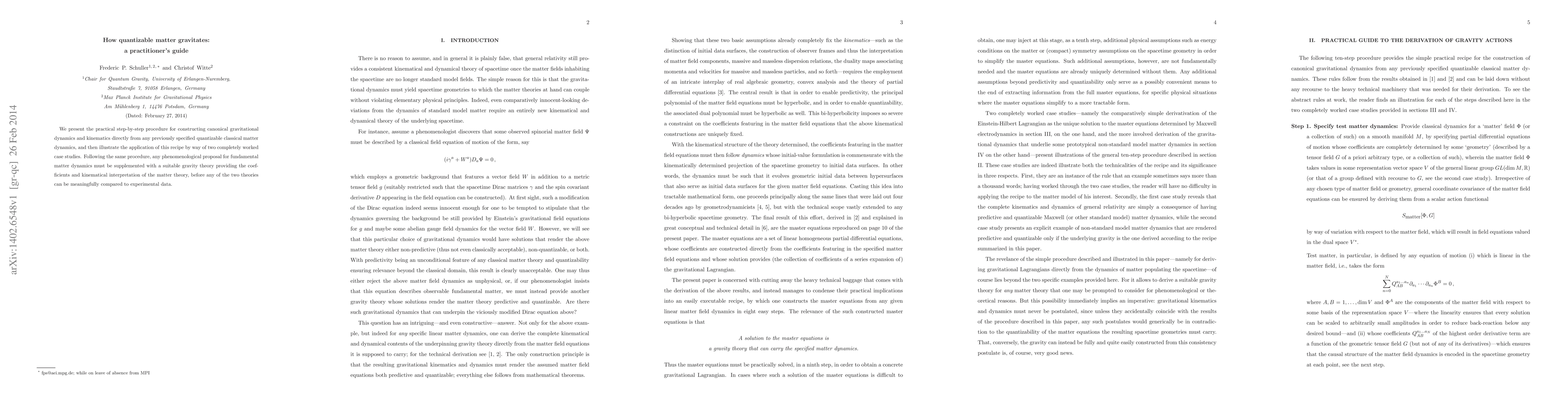 We present the practical step-by-step procedure for constructing canonical gravitational dynamics and kinematics directly from any previously specified quantizable classical matter dynamics, and then illustrate the application of this recipe by way of two completely worked case studies. Following the same procedure, any phenomenological proposal for fundamental matter dynamics must be supplemented with a suitable gravity theory providing the coefficients and kinematical interpretation of the matter equations, before any of the two theories can be meaningfully compared to experimental data.