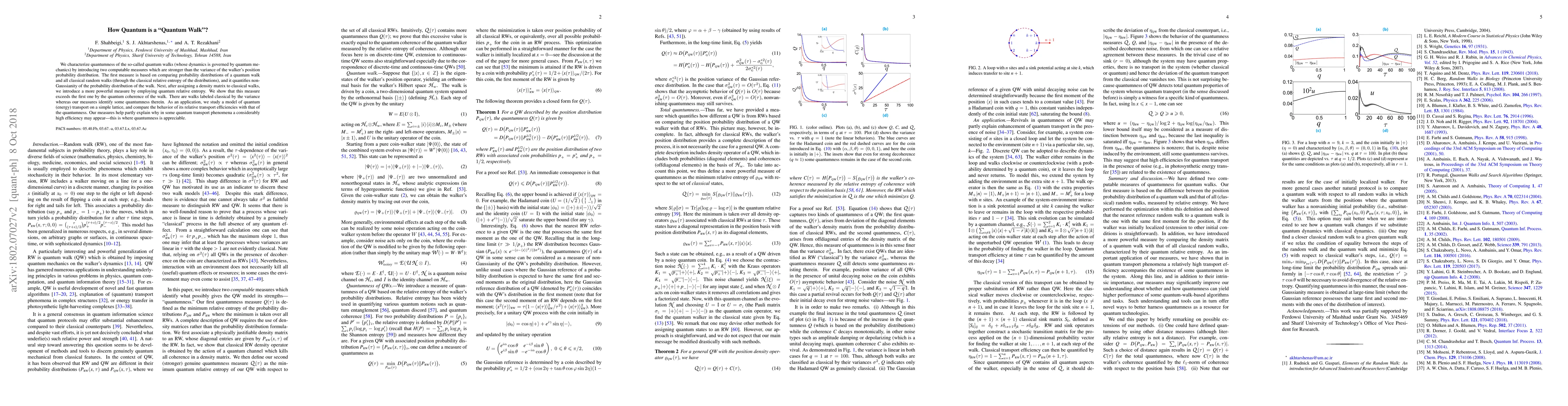 This paper introduces two advanced measures to quantify the quantumness of quantum walks, surpassing traditional variance-based methods. It demonstrates that these measures reveal quantum characteristics in walks that appear classical by conventional standards, and applies them to analyze quantum transport efficiency in lattice models.