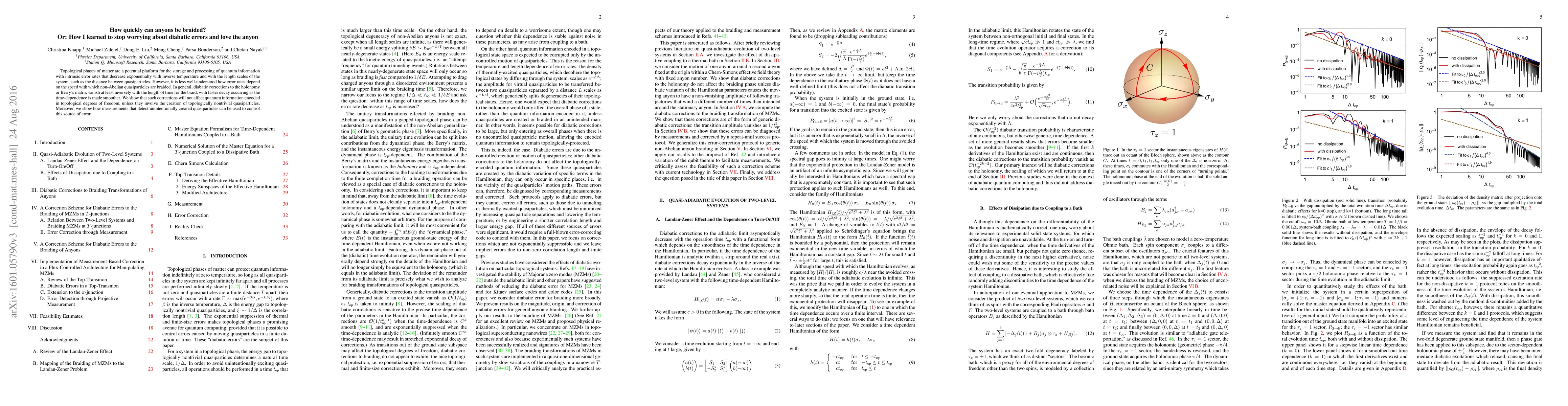 Topological phases of matter are a potential platform for the storage and processing of quantum information with intrinsic error rates that decrease exponentially with inverse temperature and with the length scales of the system, such as the distance between quasiparticles. However, it is less well-understood how error rates depend on the speed with which non-Abelian quasiparticles are braided. In general, diabatic corrections to the holonomy or Berry's matrix vanish at least inversely with the length of time for the braid, with faster decay occurring as the time-dependence is made smoother. We show that such corrections will not affect quantum information encoded in topological degrees of freedom, unless they involve the creation of topologically nontrivial quasiparticles. Moreover, we show how measurements that detect unintentionally created quasiparticles can be used to control this source of error.