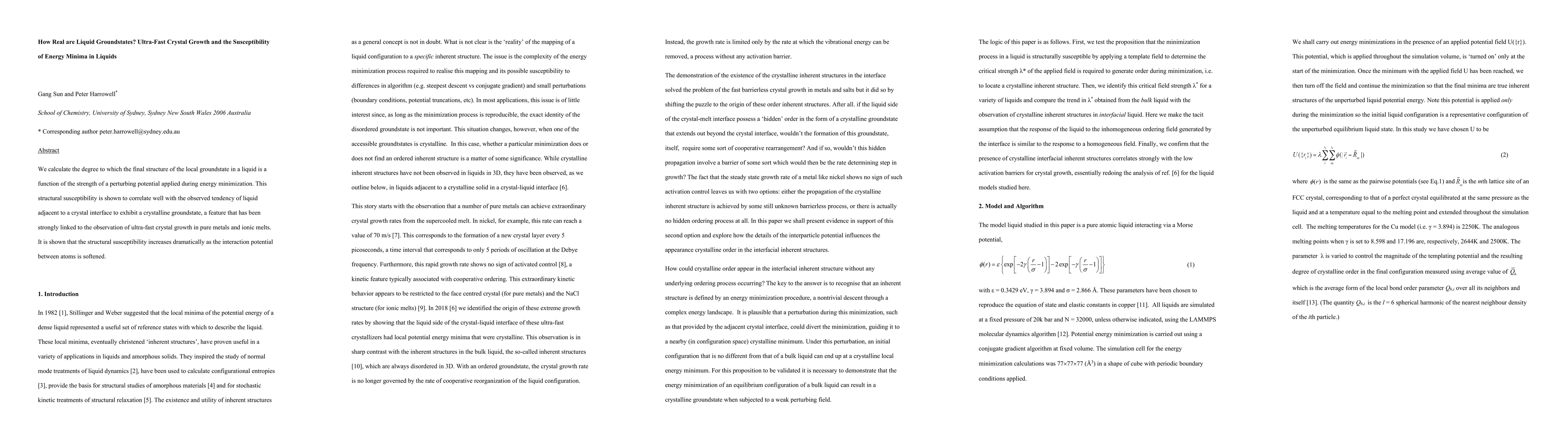 We calculate the degree to which the final structure of the local groundstate in a liquid is a function of the strength of a perturbing potential applied during energy minimization. This structural susceptibility is shown to correlate well with the observed tendency of liquid adjacent to a crystal interface to exhibit a crystalline groundstate, a feature that has been strongly linked to the observation of ultra-fast crystal growth in pure metals and ionic melts. It is shown that the structural susceptibility increases dramatically as the interaction potential between atoms is softened.