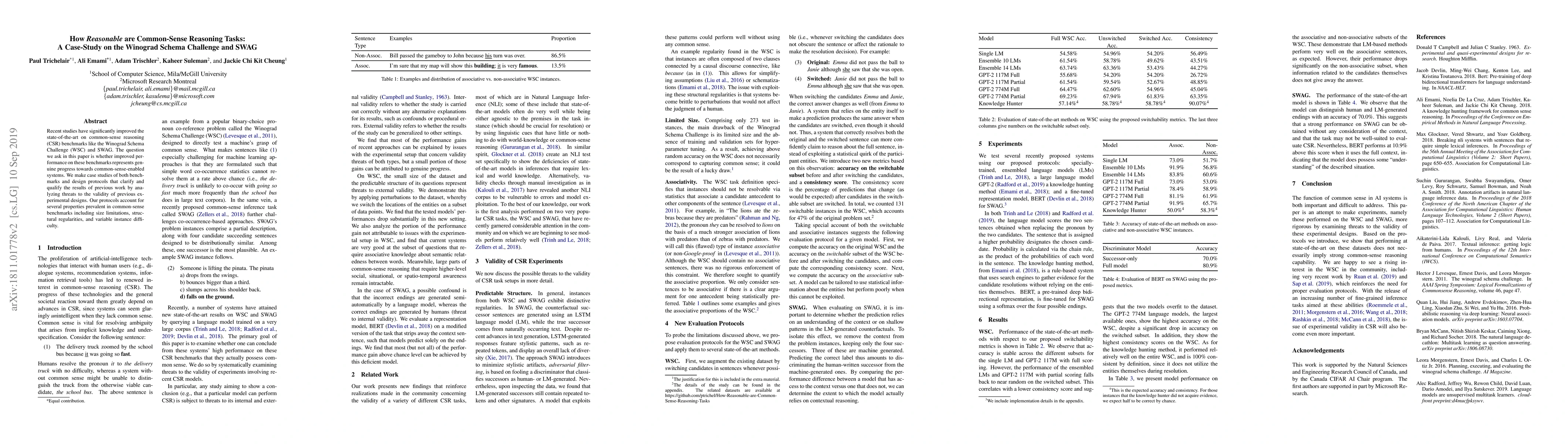 Recent studies have significantly improved the state-of-the-art on common-sense reasoning (CSR) benchmarks like the Winograd Schema Challenge (WSC) and SWAG. The question we ask in this paper is whether improved performance on these benchmarks represents genuine progress towards common-sense-enabled systems. We make case studies of both benchmarks and design protocols that clarify and qualify the results of previous work by analyzing threats to the validity of previous experimental designs. Our protocols account for several properties prevalent in common-sense benchmarks including size limitations, structural regularities, and variable instance difficulty.