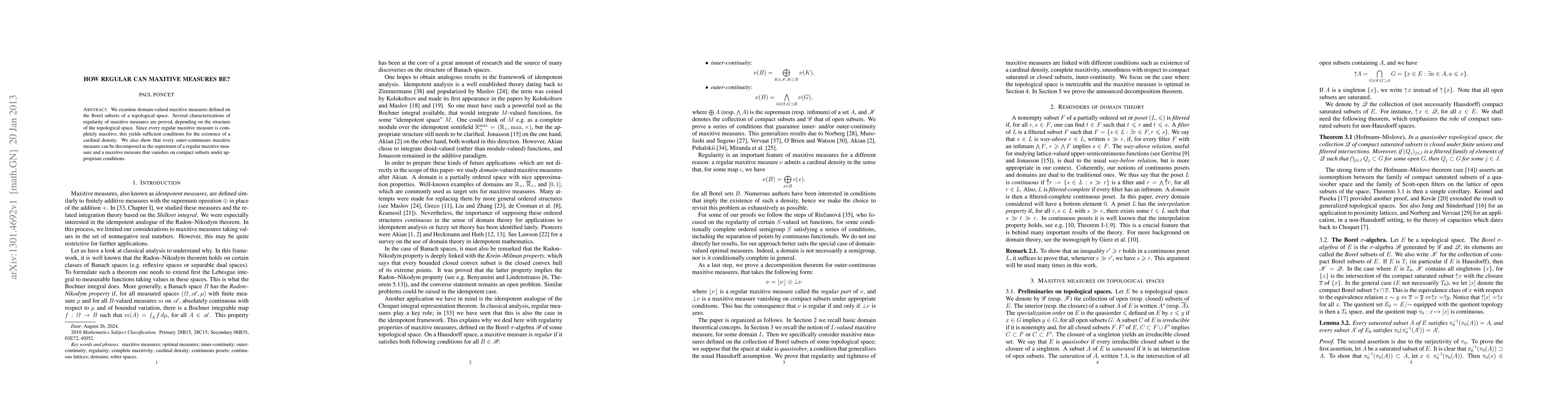 This paper investigates the regularity of domain-valued maxitive measures on Borel subsets of topological spaces, proving various characterizations based on the space's structure. It establishes sufficient conditions for the existence of cardinal density and decomposes outer-continuous maxitive measures under specific conditions.