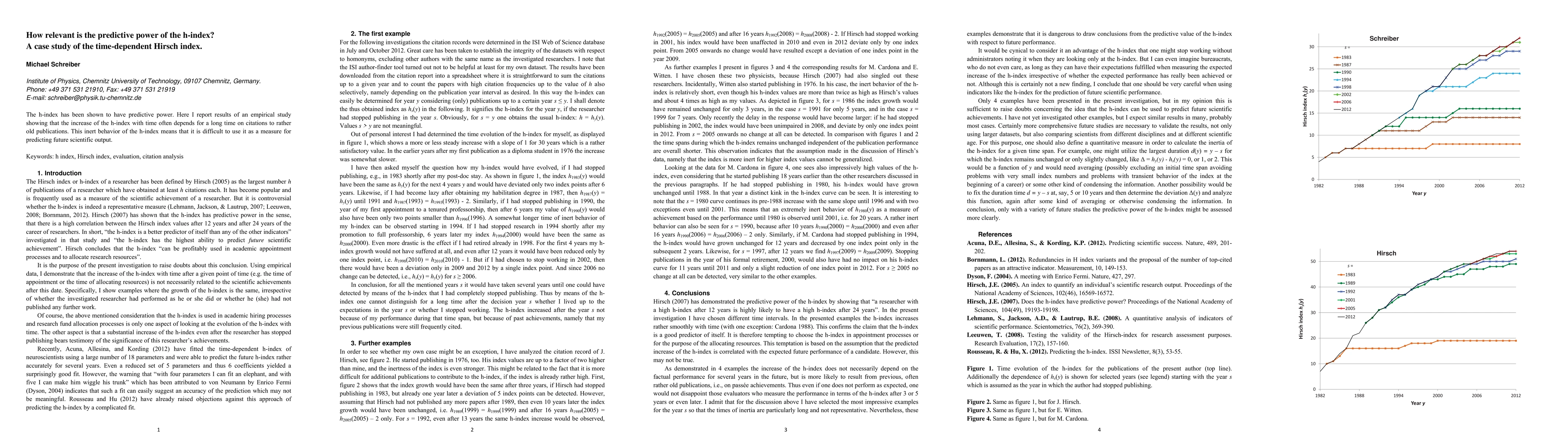 The h-index has been shown to have predictive power. Here I report results of an empirical study showing that the increase of the h-index with time often depends for a long time on citations to rather old publications. This inert behavior of the h-index means that it is difficult to use it as a measure for predicting future scientific output.