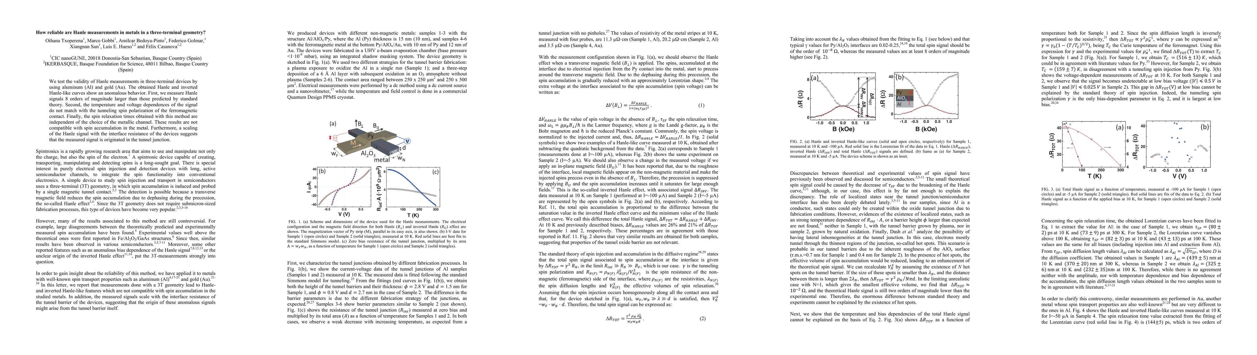 We test the validity of Hanle measurements in three-terminal devices by using aluminum (Al) and gold (Au). The obtained Hanle and inverted Hanle-like curves show an anomalous behavior. First, we measure Hanle signals 8 orders of magnitude larger than those predicted by standard theory. Second, the temperature and voltage dependences of the signal do not match with the tunneling spin polarization of the ferromagnetic contact. Finally, the spin relaxation times obtained with this method are independent of the choice of the metallic channel. These results are not compatible with spin accumulation in the metal. Furthermore, a scaling of the Hanle signal with the interface resistance of the devices suggests that the measured signal is originated in the tunnel junction.