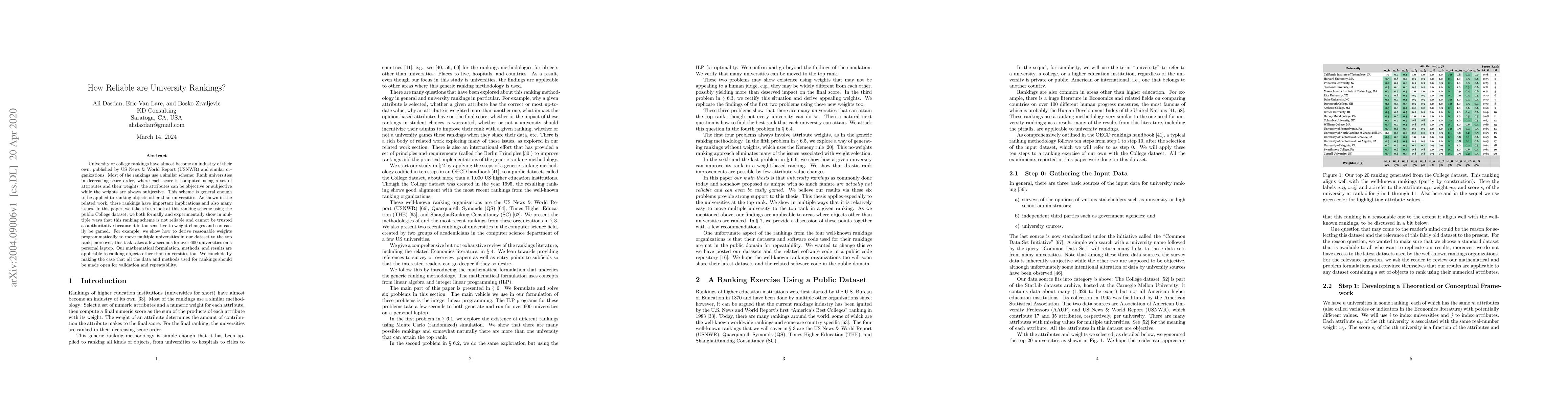 This paper explores the unreliability of university rankings, demonstrating through formal and experimental analysis that the ranking scheme is highly sensitive to weight changes and can be easily manipulated. It concludes that transparency in data and methods is essential for validation and repeatability.