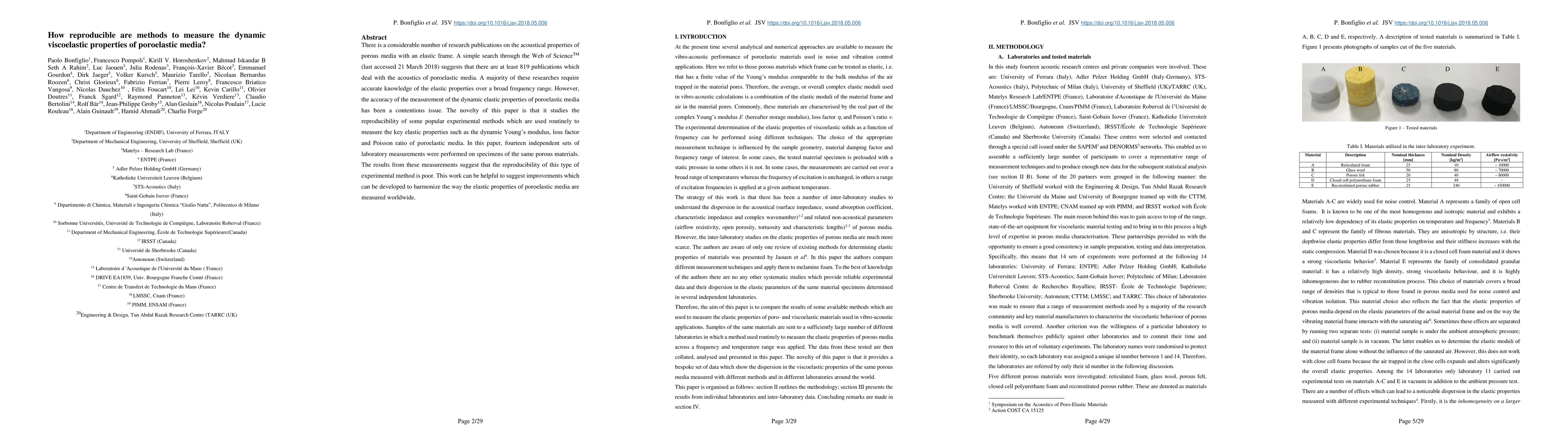 This paper investigates the reproducibility of methods used to measure dynamic viscoelastic properties of poroelastic materials. Fourteen independent lab measurements on identical specimens reveal poor reproducibility, suggesting a need for harmonizing measurement techniques worldwide.