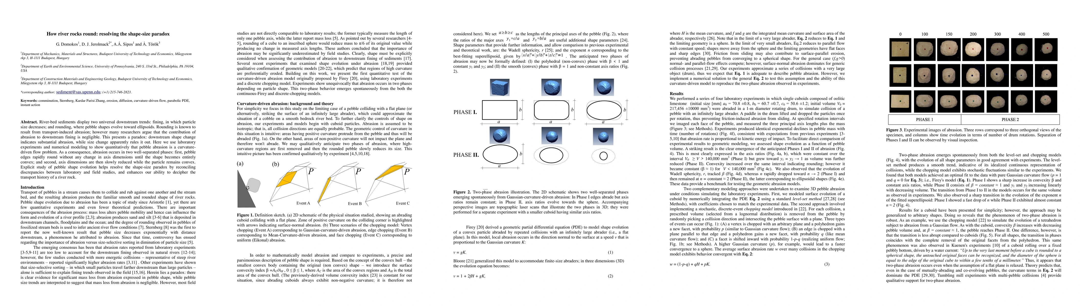 New research resolves the shape-size paradox in river rocks by showing that abrasion occurs in two phases: rapid rounding of edges followed by size reduction, clarifying the relationship between transport-induced changes and particle shape.