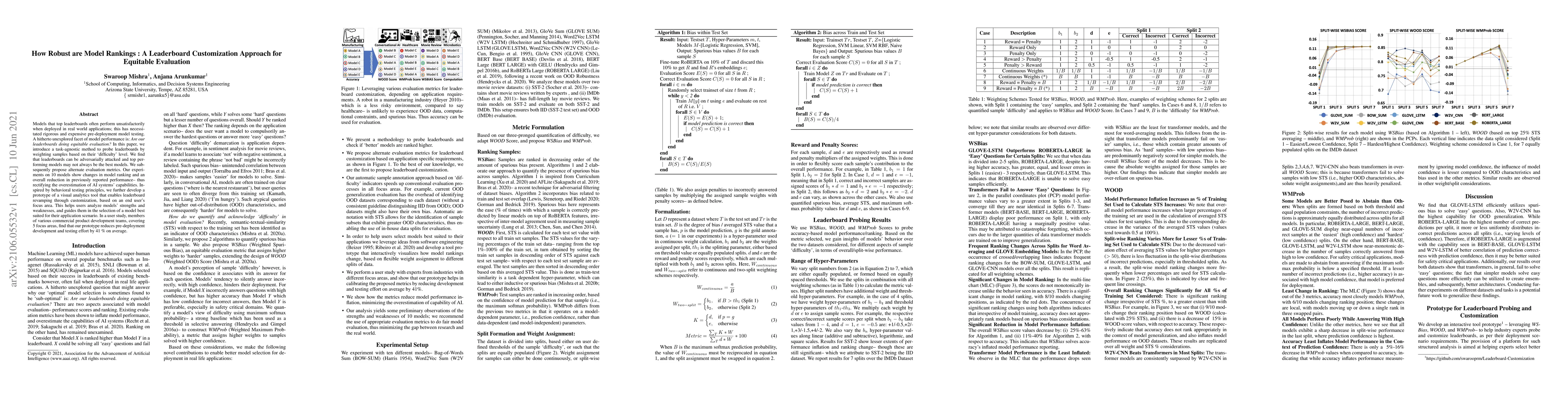 Models that top leaderboards often perform unsatisfactorily when deployed in real world applications; this has necessitated rigorous and expensive pre-deployment model testing. A hitherto unexplored facet of model performance is: Are our leaderboards doing equitable evaluation? In this paper, we introduce a task-agnostic method to probe leaderboards by weighting samples based on their `difficulty' level. We find that leaderboards can be adversarially attacked and top performing models may not always be the best models. We subsequently propose alternate evaluation metrics. Our experiments on 10 models show changes in model ranking and an overall reduction in previously reported performance -- thus rectifying the overestimation of AI systems' capabilities. Inspired by behavioral testing principles, we further develop a prototype of a visual analytics tool that enables leaderboard revamping through customization, based on an end user's focus area. This helps users analyze models' strengths and weaknesses, and guides them in the selection of a model best suited for their application scenario. In a user study, members of various commercial product development teams, covering 5 focus areas, find that our prototype reduces pre-deployment development and testing effort by 41% on average.