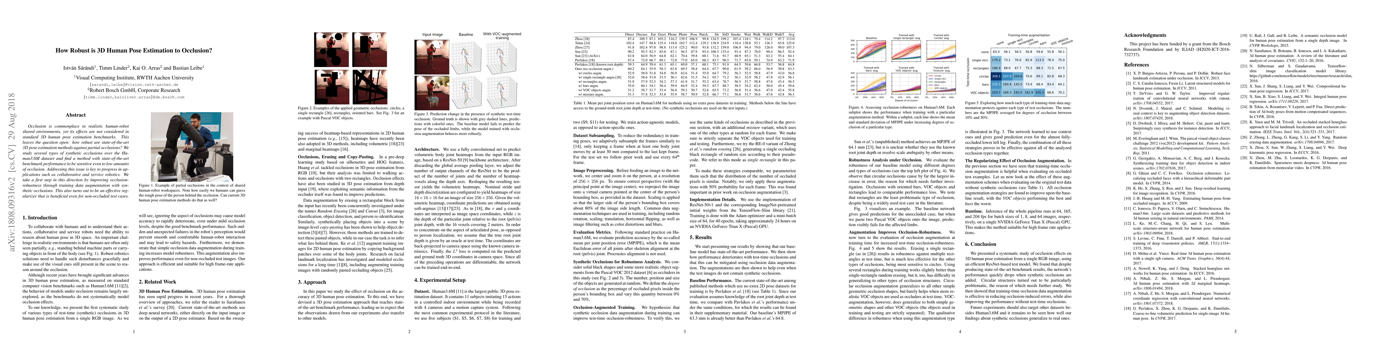 This research investigates the robustness of state-of-the-art 3D human pose estimation methods against occlusion, revealing significant sensitivity even to minor occlusions. The study proposes augmenting training data with synthetic occlusions to enhance robustness, demonstrating improved performance and effectiveness for both occluded and non-occluded test cases.
