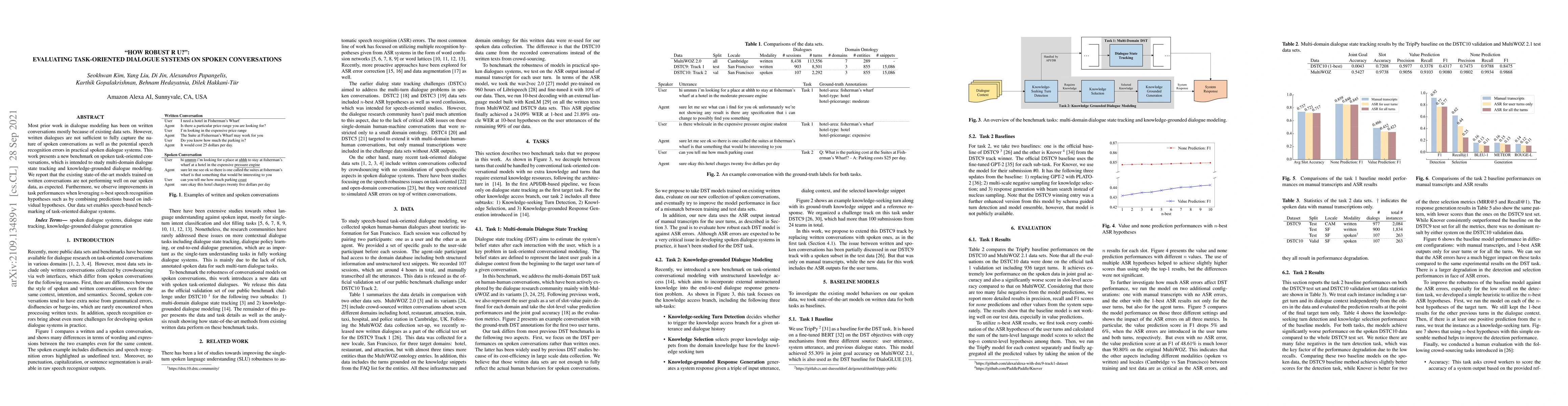 This paper introduces a new benchmark for evaluating task-oriented dialogue systems using spoken conversations, highlighting the limitations of existing models trained on written data. The study finds that current models perform poorly on spoken data and suggests improvements by leveraging n-best speech recognition hypotheses.