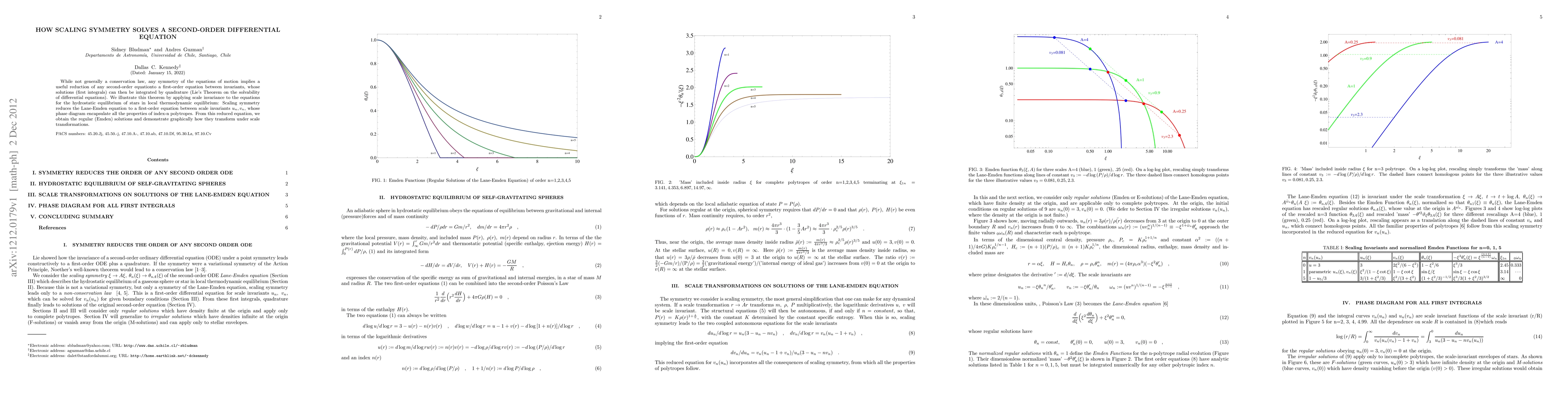While not generally a conservation law, any symmetry of the equations of motion implies a useful reduction of any second-order equationto a first-order equation between invariants, whose solutions (first integrals) can then be integrated by quadrature (Lie's Theorem on the solvability of differential equations). We illustrate this theorem by applying scale invariance to the equations for the hydrostatic equilibrium of stars in local thermodynamic equilibrium: Scaling symmetry reduces the Lane-Emden equation to a first-order equation between scale invariants un; vn, whose phase diagram encapsulates all the properties of index-n polytropes. From this reduced equation, we obtain the regular (Emden) solutions and demonstrate graphically how they transform under scale transformations.