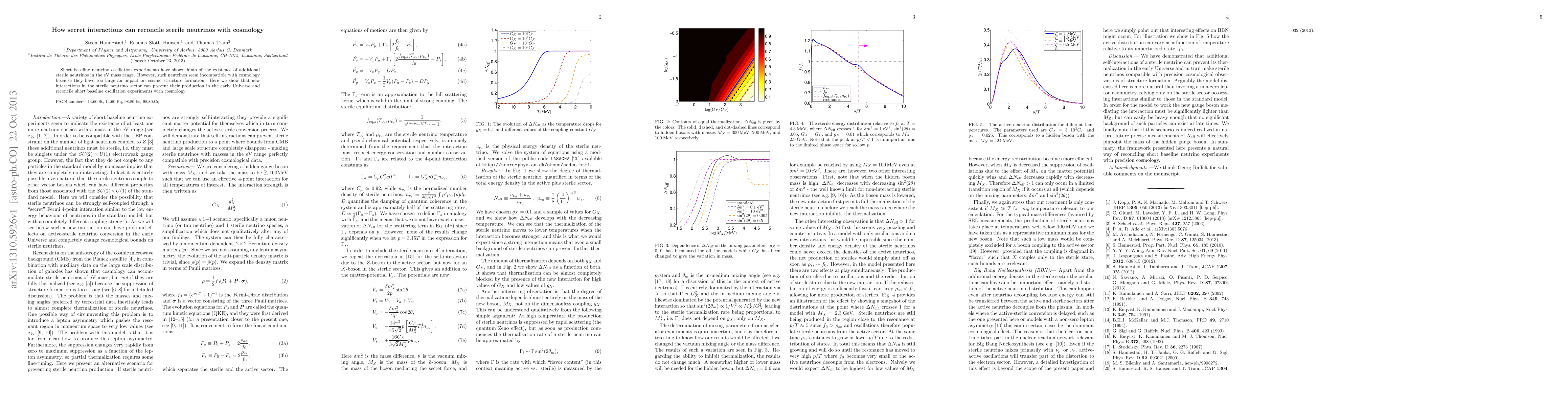 This paper proposes that secret interactions within the sterile neutrino sector can prevent their overproduction in the early Universe, thereby reconciling short baseline oscillation hints of their existence with cosmological constraints on cosmic structure formation.