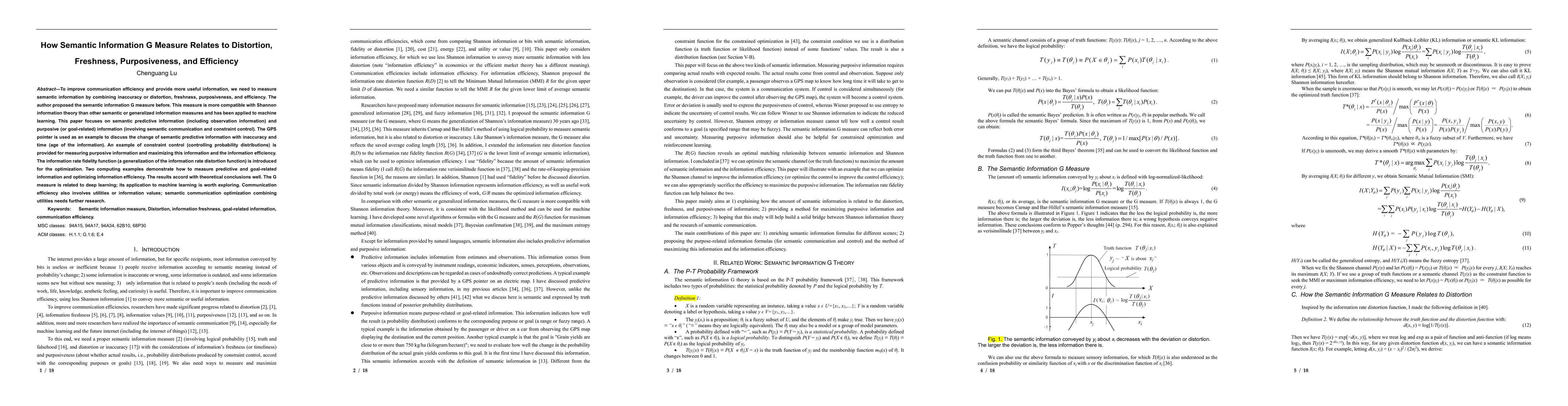 This paper proposes the semantic information G measure to evaluate communication efficiency by integrating distortion, freshness, purposiveness, and efficiency. It demonstrates the measure's application through examples, showing its compatibility with Shannon information theory and potential in machine learning and deep learning optimization.