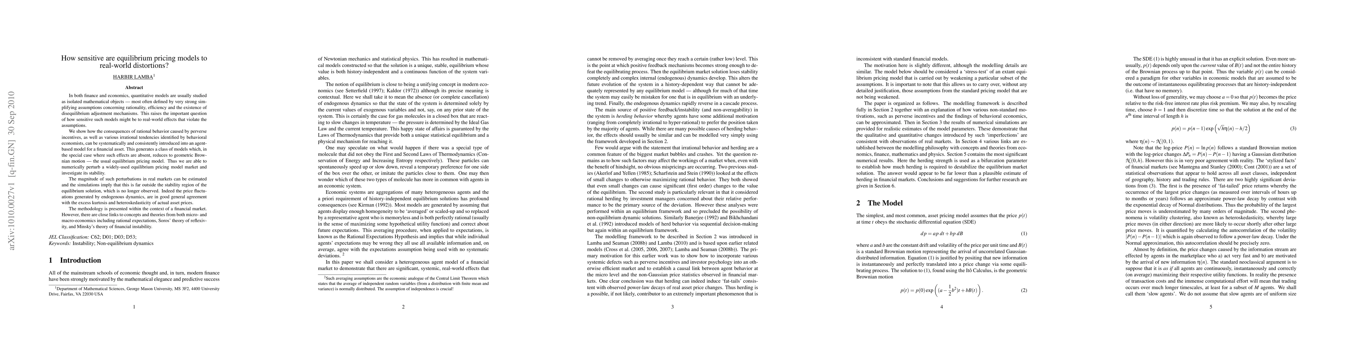 In both finance and economics, quantitative models are usually studied as isolated mathematical objects --- most often defined by very strong simplifying assumptions concerning rationality, efficiency and the existence of disequilibrium adjustment mechanisms. This raises the important question of how sensitive such models might be to real-world effects that violate the assumptions. We show how the consequences of rational behavior caused by perverse incentives, as well as various irrational tendencies identified by behavioral economists, can be systematically and consistently introduced into an agent-based model for a financial asset. This generates a class of models which, in the special case where such effects are absent, reduces to geometric Brownian motion --- the usual equilibrium pricing model. Thus we are able to numerically perturb a widely-used equilibrium pricing model market and investigate its stability. The magnitude of such perturbations in real markets can be estimated and the simulations imply that this is far outside the stability region of the equilibrium solution, which is no longer observed. Indeed the price fluctuations generated by endogenous dynamics, are in good general agreement with the excess kurtosis and heteroskedasticity of actual asset prices. The methodology is presented within the context of a financial market. However, there are close links to concepts and theories from both micro- and macro-economics including rational expectations, Soros' theory of reflexivity, and Minsky's theory of financial instability.