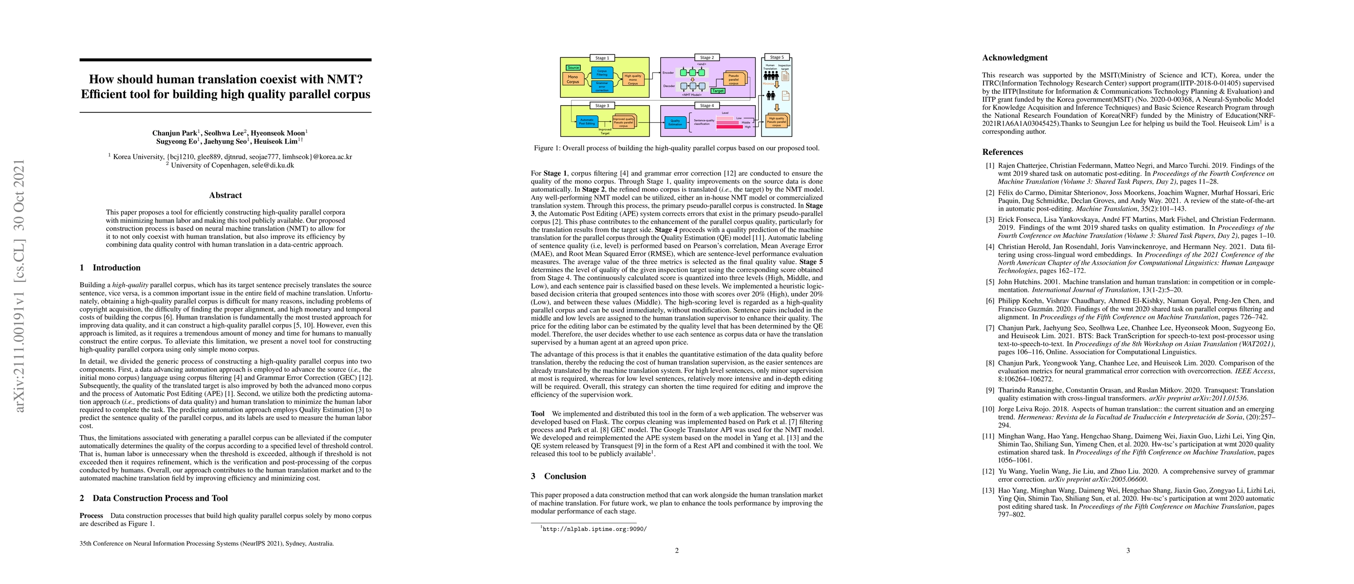 This paper introduces a tool for creating high-quality parallel corpora with minimal human effort, leveraging neural machine translation (NMT) to enhance efficiency. The tool aims to harmonize human translation with NMT by integrating data quality control and human translation in a data-centric manner.