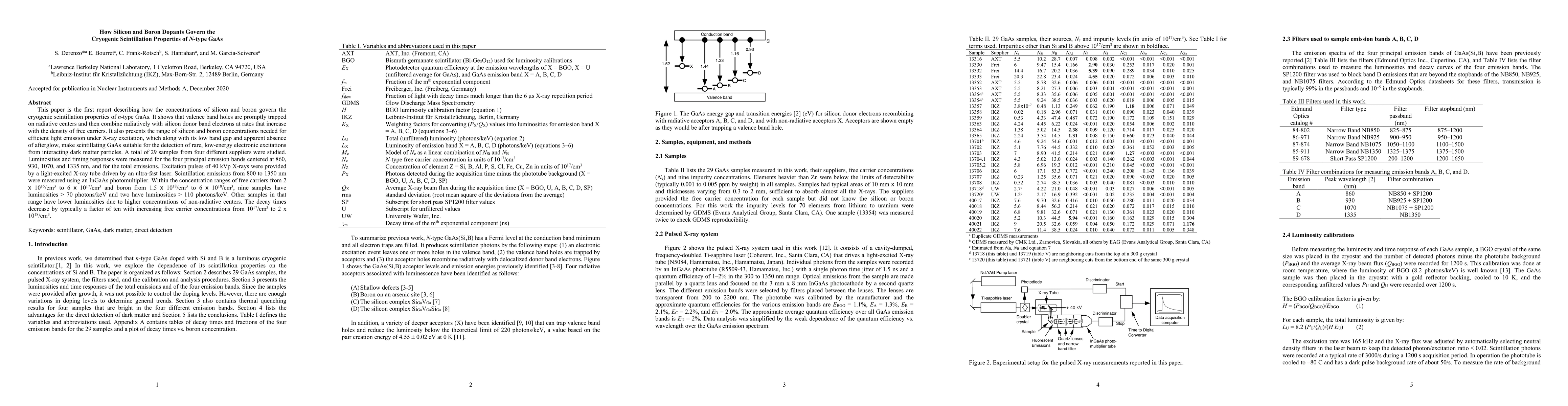 This research identifies how silicon and boron dopant concentrations in n-type GaAs control its cryogenic scintillation properties. The study reveals that valence band holes combine radiatively with silicon donor electrons, enhancing light emission. Optimal dopant ranges are determined for efficient X-ray excitation, making GaAs suitable for detecting rare, low-energy particles. The analysis covers 29 samples, measuring luminosities and timing responses across four emission bands, with certain samples exceeding 70 photons/keV luminosity.