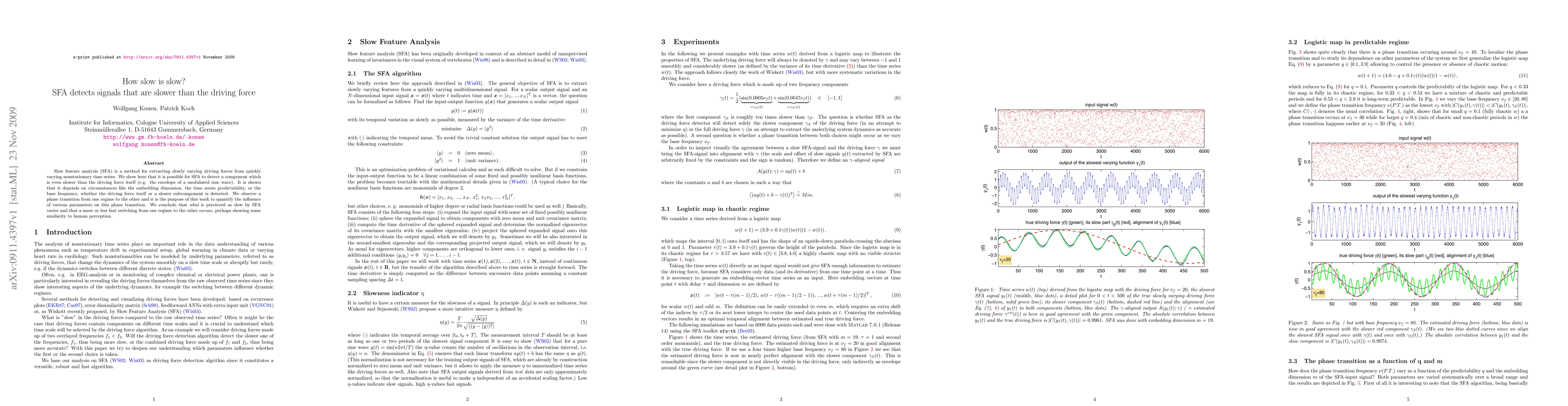 This paper investigates how slow feature analysis (SFA) can detect components slower than the driving force in nonstationary time series, demonstrating a phase transition dependent on factors like embedding dimension and predictability. It concludes that SFA's perception of "slowness" varies and can switch regimes, potentially mirroring human perception.
