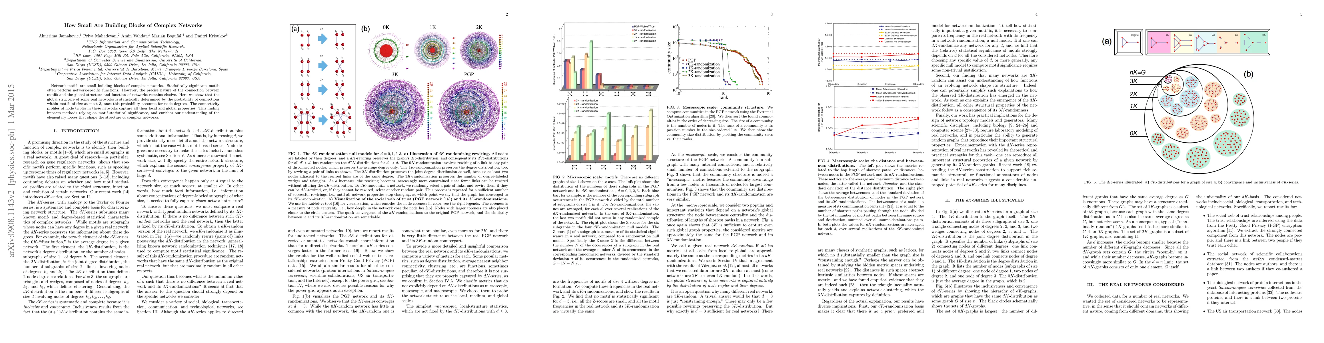 This paper demonstrates that the global structure of certain real networks is determined by the probability of connections within small motifs of size three or less, once accounting for node degrees, suggesting that these small building blocks capture all local and global properties of the network. This insight reshapes our understanding of the fundamental forces shaping complex networks and challenges methods based on motif statistical significance.