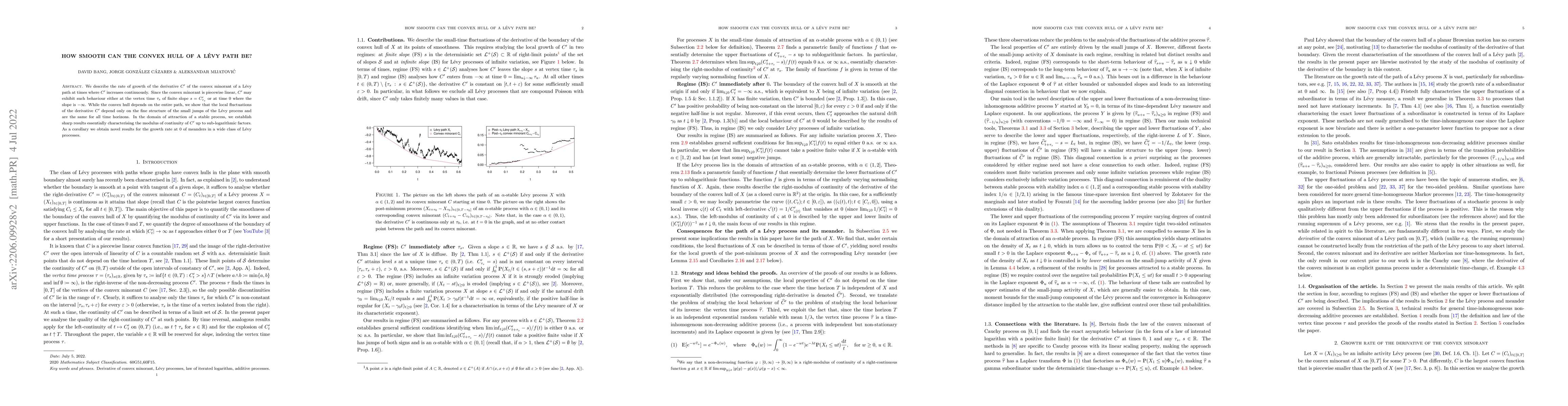 This paper investigates the smoothness of the convex hull of a Lévy path by analyzing the rate of growth of its derivative. It reveals that local fluctuations in the derivative depend solely on the small jumps of the Lévy process, leading to sharp results on the modulus of continuity in the domain of attraction of a stable process.