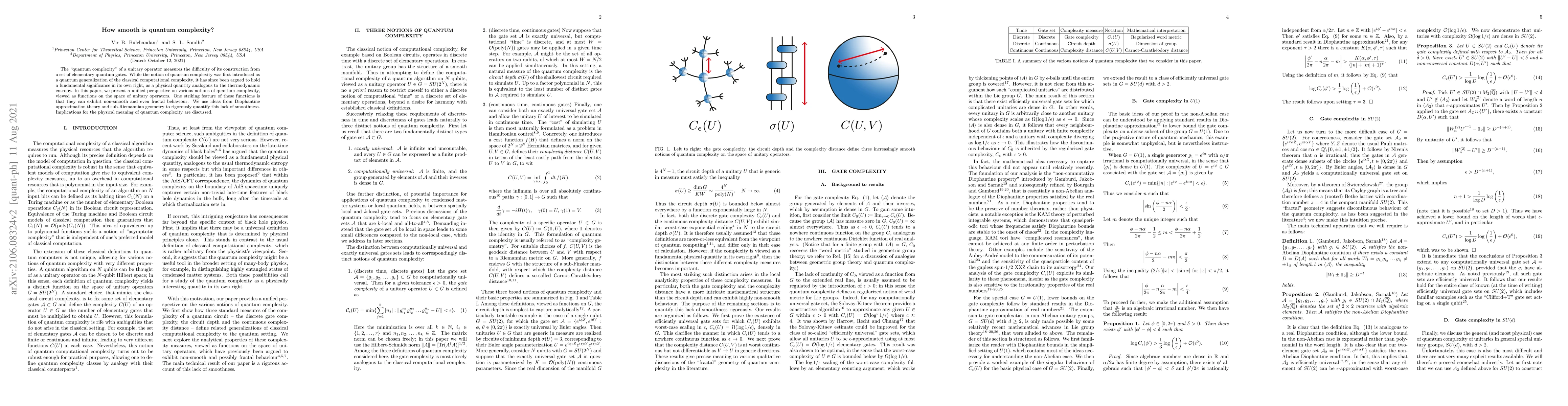 The "quantum complexity" of a unitary operator measures the difficulty of its construction from a set of elementary quantum gates. While the notion of quantum complexity was first introduced as a quantum generalization of the classical computational complexity, it has since been argued to hold a fundamental significance in its own right, as a physical quantity analogous to the thermodynamic entropy. In this paper, we present a unified perspective on various notions of quantum complexity, viewed as functions on the space of unitary operators. One striking feature of these functions is that they can exhibit non-smooth and even fractal behaviour. We use ideas from Diophantine approximation theory and sub-Riemannian geometry to rigorously quantify this lack of smoothness. Implications for the physical meaning of quantum complexity are discussed.