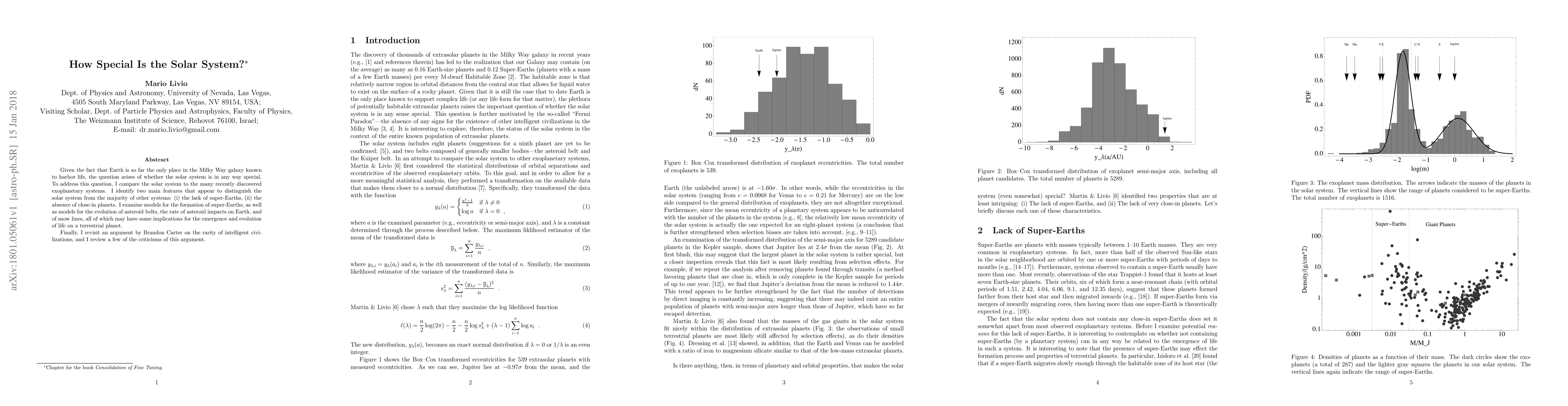 This paper compares the solar system to recently discovered exoplanetary systems to determine if it is unique, identifying the lack of super-Earths and close-in planets as distinguishing features. It explores formation and evolution models that may impact life on terrestrial planets, and reviews arguments on the rarity of intelligent civilizations.