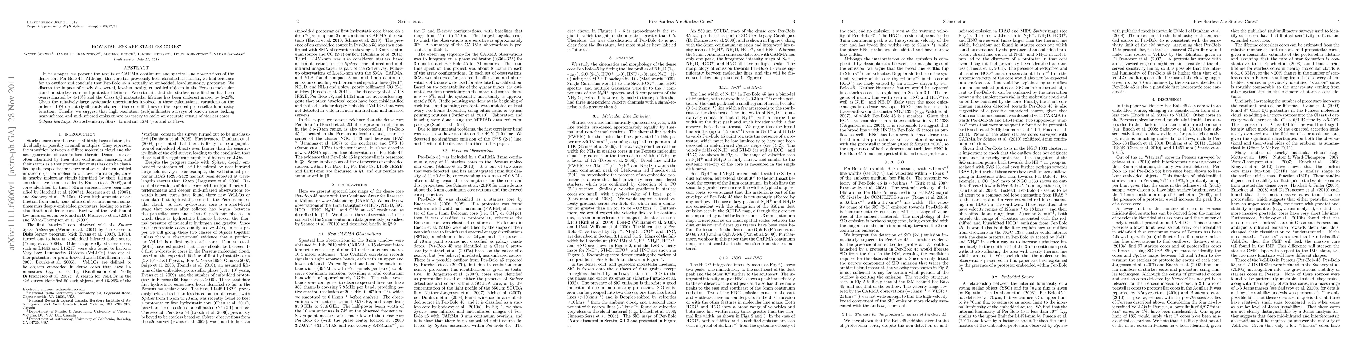 The research utilized CARMA continuum and spectral line observations to study the dense core Per-Bolo 45, previously classified as starless.