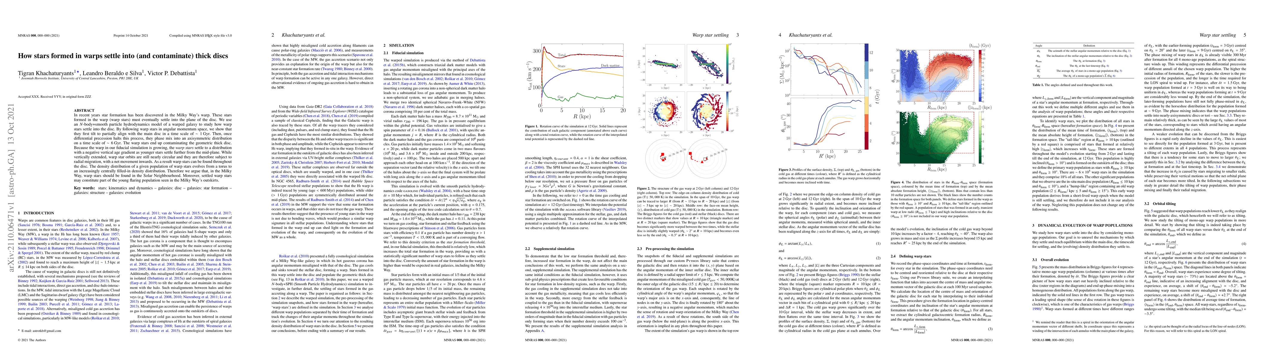 Research shows that stars formed in a galaxy's warp settle into its thick disc over 6 Gyr, contaminating it and potentially explaining the presence of young stars in the outer regions.
