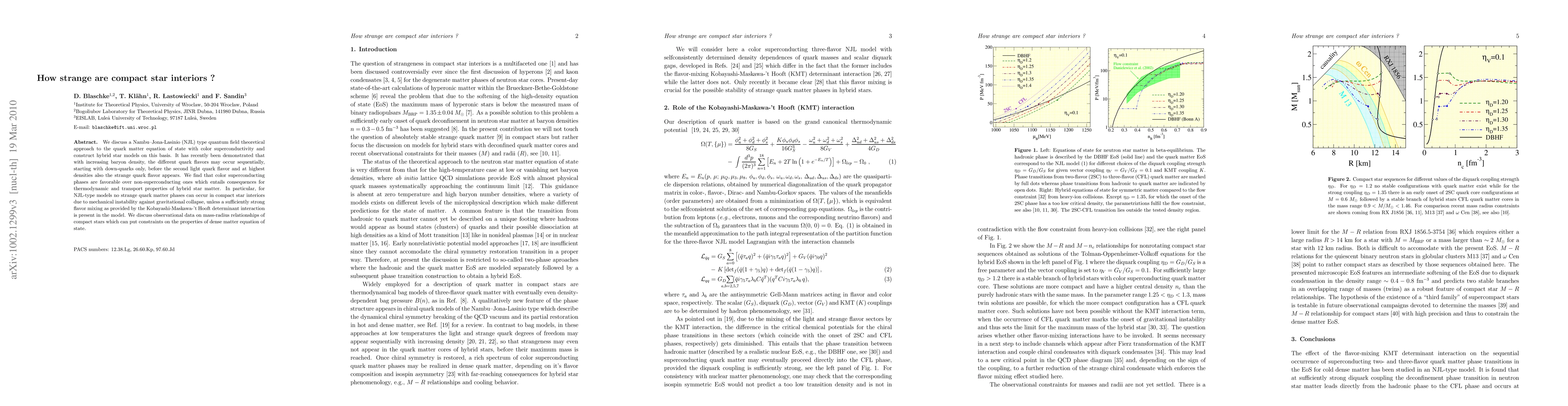 We discuss a Nambu--Jona-Lasinio (NJL) type quantum field theoretical approach to the quark matter equation of state with color superconductivity and construct hybrid star models on this basis. It has recently been demonstrated that with increasing baryon density, the different quark flavors may occur sequentially, starting with down-quarks only, before the second light quark flavor and at highest densities also the strange quark flavor appears. We find that color superconducting phases are favorable over non-superconducting ones which entails consequences for thermodynamic and transport properties of hybrid star matter. In particular, for NJL-type models no strange quark matter phases can occur in compact star interiors due to mechanical instability against gravitational collapse, unless a sufficiently strong flavor mixing as provided by the Kobayashi-Maskawa-'t Hooft determinant interaction is present in the model. We discuss observational data on mass-radius relationships of compact stars which can put constraints on the properties of dense matter equation of state.