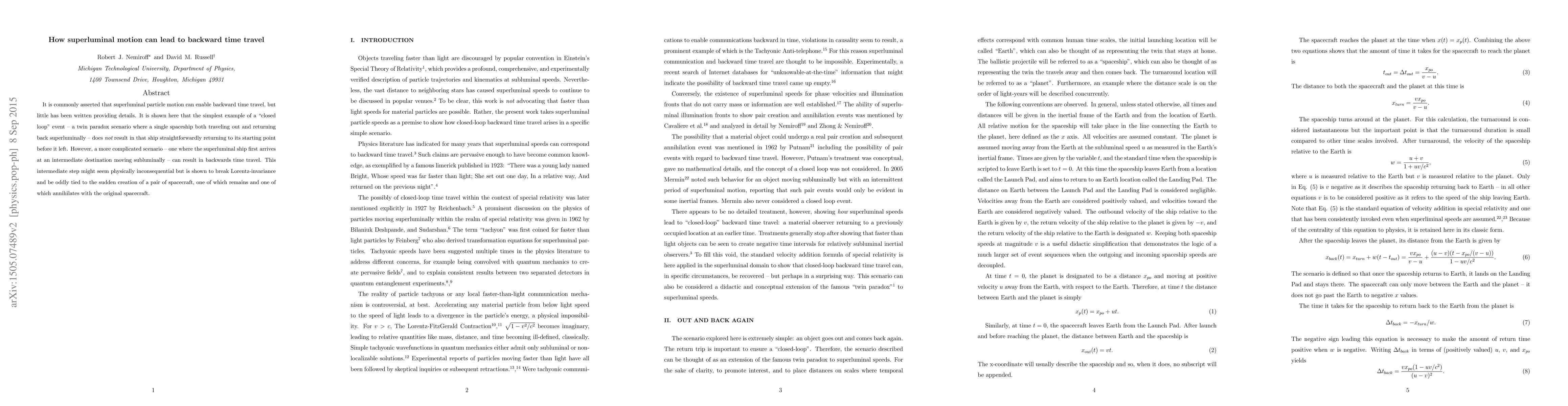 Superluminal motion does not enable straightforward backward time travel, but a complicated scenario involving an intermediate subluminally moving destination can result in backwards time travel, violating Lorentz-invariance.