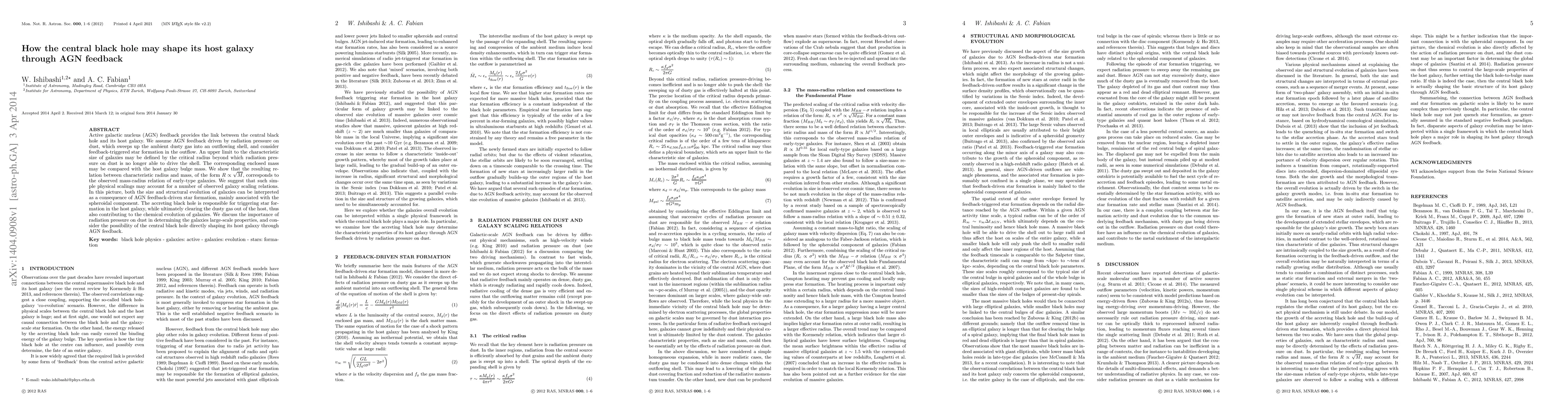 This paper explores how active galactic nucleus (AGN) feedback driven by radiation pressure on dust influences the size and structure of host galaxies, suggesting that AGN feedback-triggered star formation can define the mass-radius relation observed in early-type galaxies. The central black hole plays a dual role in triggering star formation and clearing dusty gas, thereby shaping the galaxy's evolution and chemical makeup.