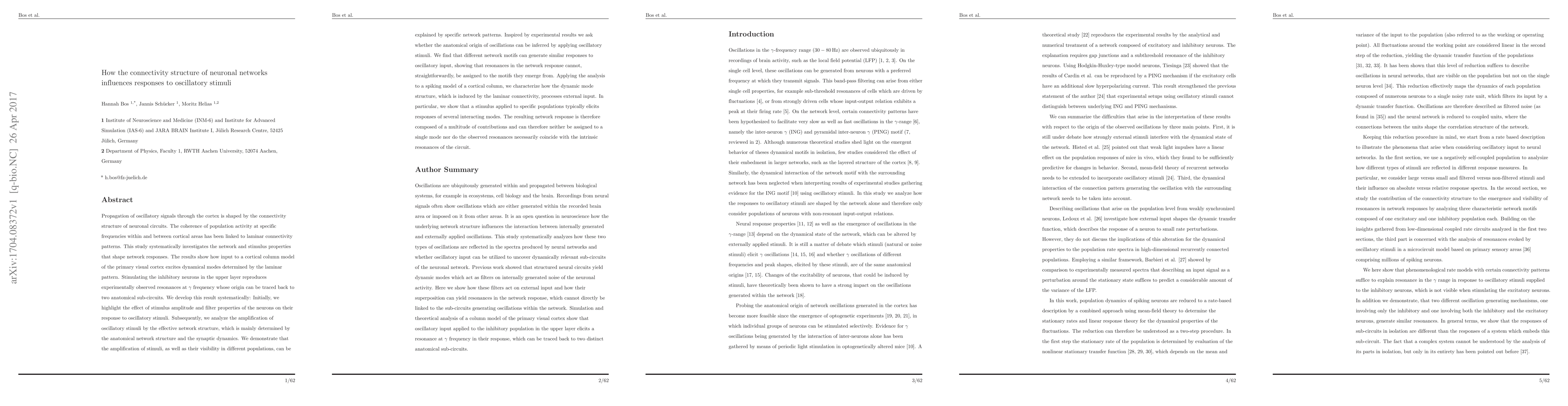 This study investigates how the connectivity structure of neuronal networks influences responses to oscillatory stimuli, demonstrating that specific network patterns amplify stimuli and shape network responses. The research reveals that while certain network motifs can generate similar responses, resonances cannot straightforwardly be attributed to their origins, as the network response is a complex interplay of multiple dynamic modes.