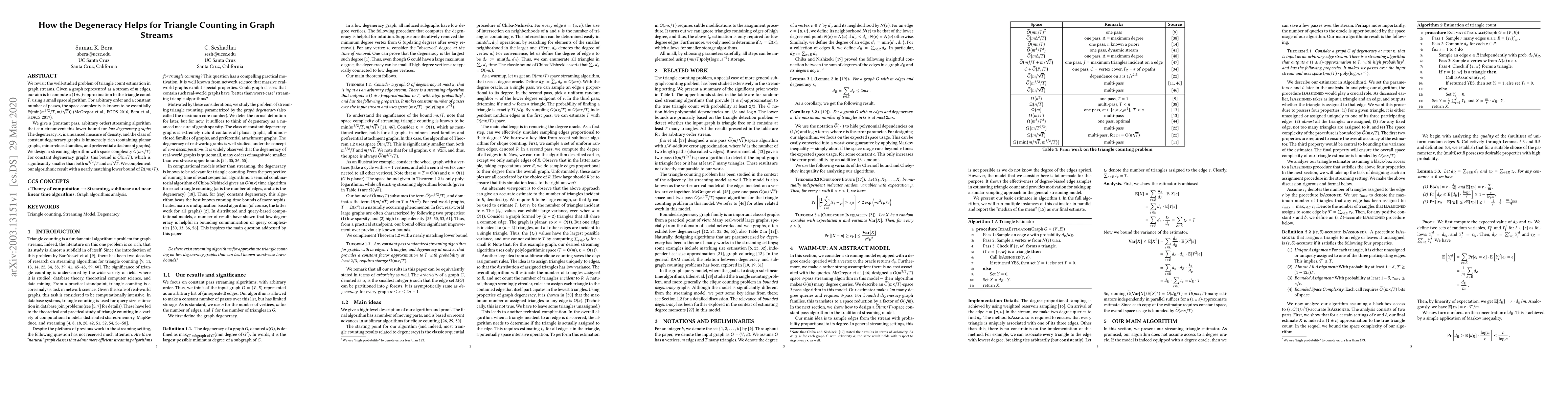 We revisit the well-studied problem of triangle count estimation in graph streams. Given a graph represented as a stream of $m$ edges, our aim is to compute a $(1\pm\varepsilon)$-approximation to the triangle count $T$, using a small space algorithm. For arbitrary order and a constant number of passes, the space complexity is known to be essentially $\Theta(\min(m^{3/2}/T, m/\sqrt{T}))$ (McGregor et al., PODS 2016, Bera et al., STACS 2017). We give a (constant pass, arbitrary order) streaming algorithm that can circumvent this lower bound for \emph{low degeneracy graphs}. The degeneracy, $\kappa$, is a nuanced measure of density, and the class of constant degeneracy graphs is immensely rich (containing planar graphs, minor-closed families, and preferential attachment graphs). We design a streaming algorithm with space complexity $\widetilde{O}(m\kappa/T)$. For constant degeneracy graphs, this bound is $\widetilde{O}(m/T)$, which is significantly smaller than both $m^{3/2}/T$ and $m/\sqrt{T}$. We complement our algorithmic result with a nearly matching lower bound of $\Omega(m\kappa/T)$.