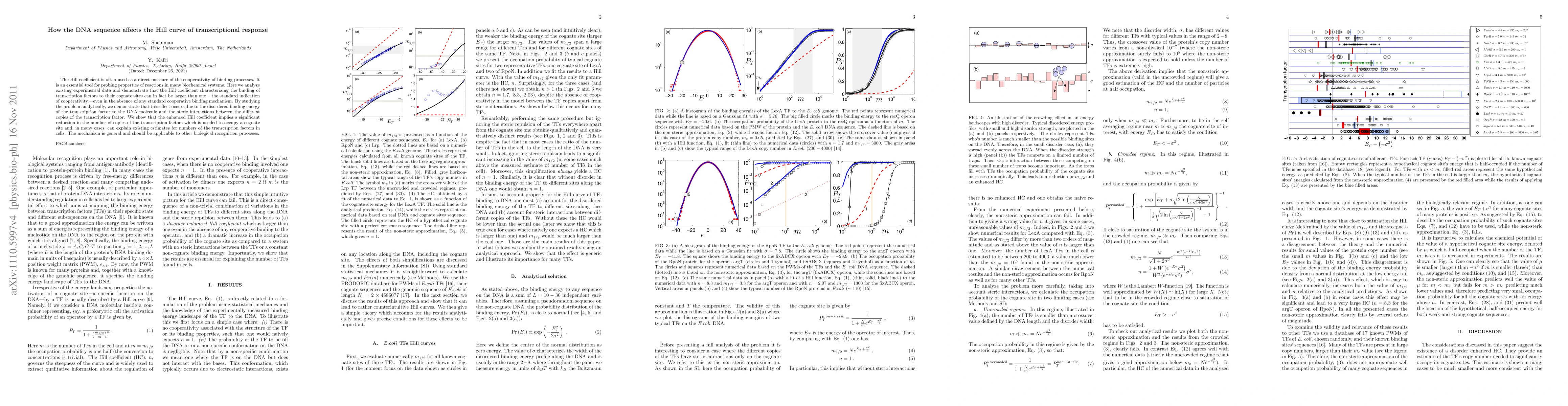 Research shows that DNA sequence can affect transcription factor binding, leading to Hill coefficients greater than one even without cooperative mechanisms. This implies a reduced number of transcription factors needed to occupy sites, applicable to other biological recognition processes.