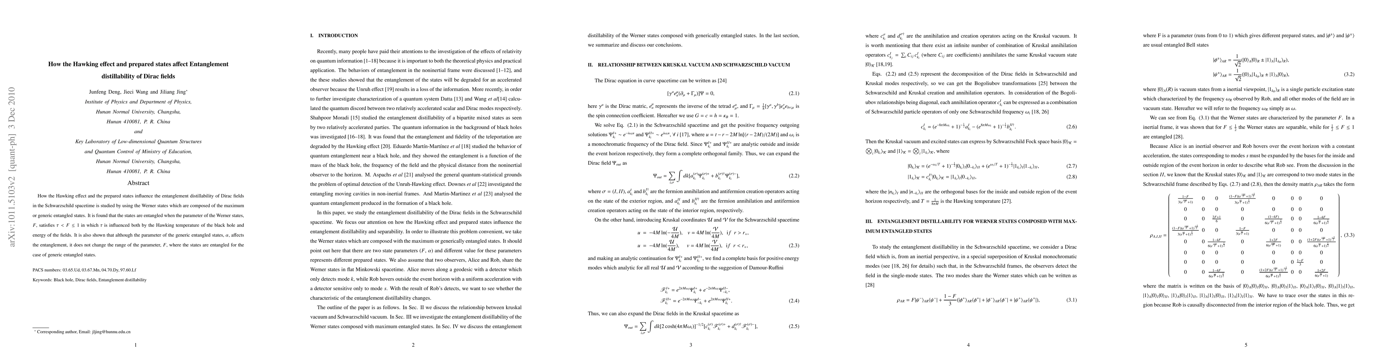 distillability of Dirac fields in the Schwarzschild spacetime is studied by