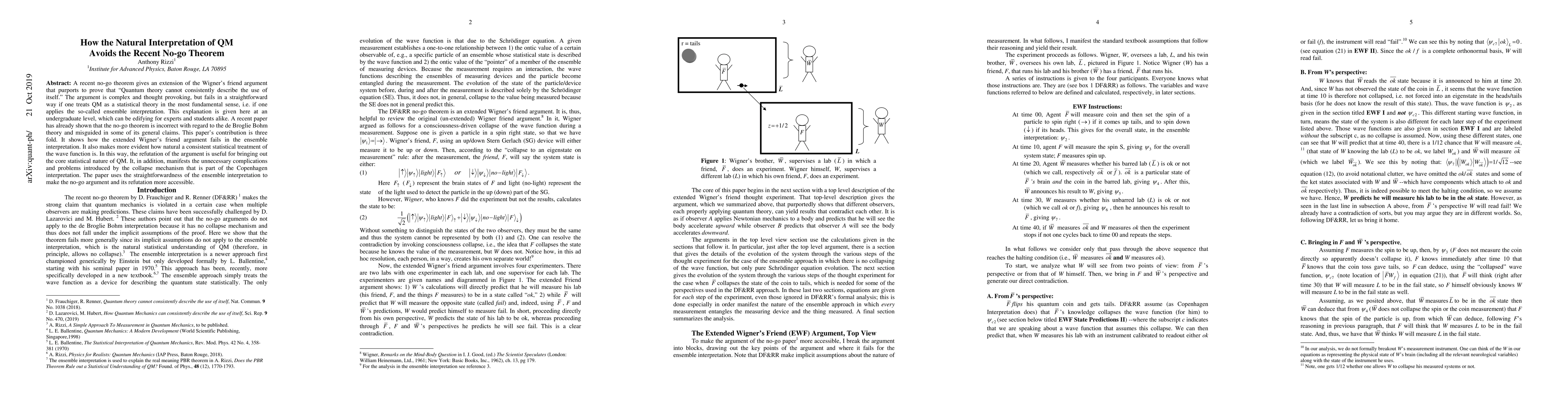 A recent no-go theorem gives an extension of the Wigner's friend argument that purports to prove that "Quantum theory cannot consistently describe the use of itself." The argument is complex and thought provoking, but fails in a straightforward way if one treats QM as a statistical theory in the most fundamental sense, i.e. if one applies the so-called ensemble interpretation. This explanation is given here at an undergraduate level, which can be edifying for experts and students alike. A recent paper has already shown that the no-go theorem is incorrect with regard to the de Broglie Bohm theory and misguided in some of its general claims. This paper's contribution is three fold. It shows how the extended Wigner's friend argument fails in the ensemble interpretation. It also makes more evident how natural a consistent statistical treatment of the wave function is. In this way, the refutation of the argument is useful for bringing out the core statistical nature of QM. It, in addition, manifests the unnecessary complications and problems introduced by the collapse mechanism that is part of the Copenhagen interpretation. The paper uses the straightforwardness of the ensemble interpretation to make the no-go argument and its refutation more accessible.