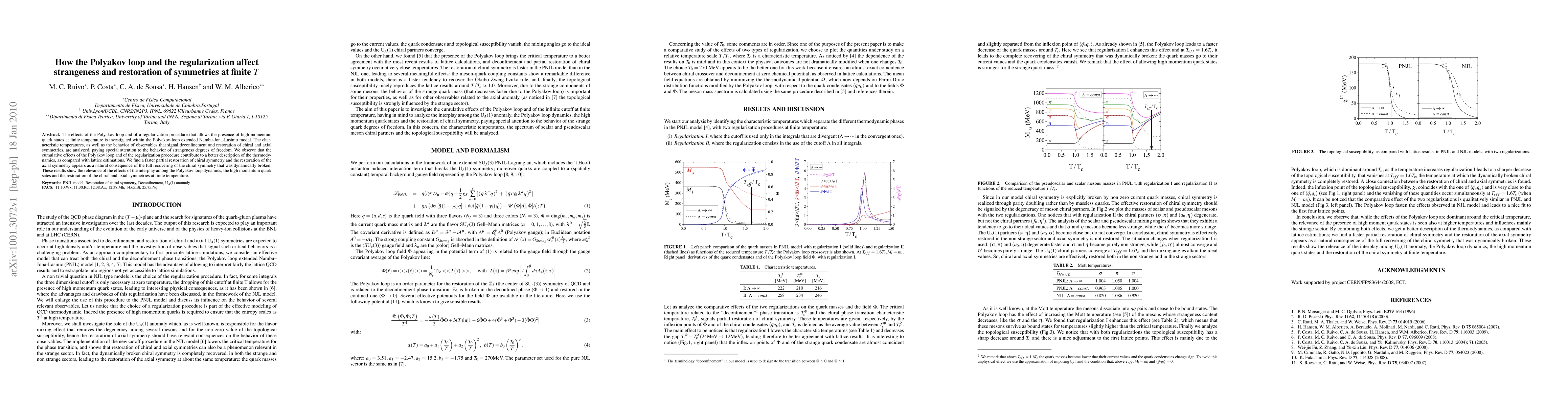 This paper investigates how the Polyakov loop and regularization influence strangeness and symmetry restoration at finite temperature using the Polyakov-loop extended Nambu-Jona-Lasinio model. The study finds that these factors lead to a more accurate thermodynamic description and a faster restoration of chiral symmetry, with the axial symmetry restoring as a consequence of chiral symmetry recovery.