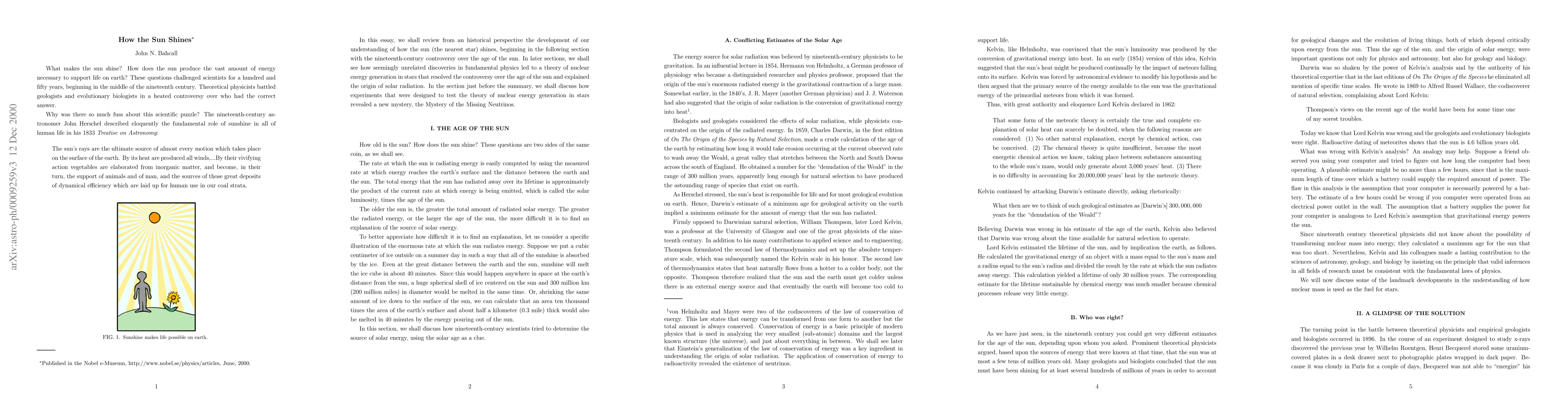 This paper explores the historical journey of understanding how the sun shines, from disagreements between Kelvin and Darwin to advancements in solar neutrino experiments.