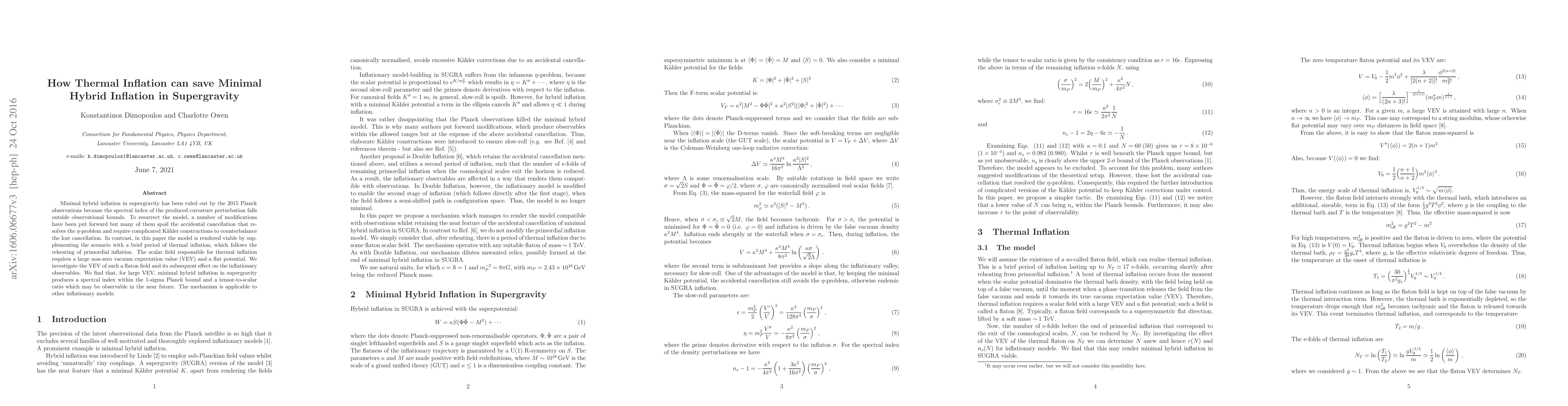 Minimal hybrid inflation in supergravity has been ruled out by the 2015 Planck observations because the spectral index of the produced curvature perturbation falls outside observational bounds. To resurrect the model, a number of modifications have been put forward but many of them spoil the accidental cancellation that resolves the eta-problem and require complicated Kahler constructions to counterbalance the lost cancellation. In contrast, in this paper the model is rendered viable by supplementing the scenario with a brief period of thermal inflation, which follows the reheating of primordial inflation. The scalar field responsible for thermal inflation requires a large non-zero vacuum expectation value (VEV) and a flat potential. We investigate the VEV of such a flaton field and its subsequent effect on the inflationary observables. We find that, for large VEV, minimal hybrid inflation in supergravity produces a spectral index within the 1-sigma Planck bound and a tensor-to-scalar ratio which may be observable in the near future. The mechanism is applicable to other inflationary models.