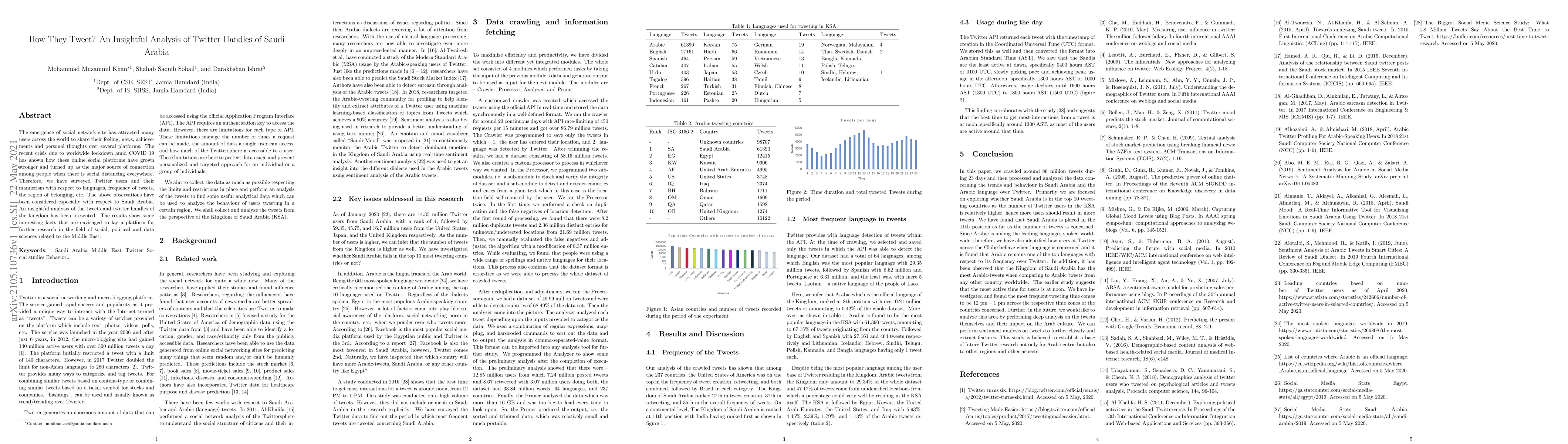 The emergence of social network site has attracted many users across the world to share their feeling, news, achievements and personal thoughts over several platforms. The recent crisis due to worldwide lockdown amid COVID 19 has shown how these online social platforms have grown stronger and turned up as the major source of connection among people when there is social distancing everywhere. Therefore, we have surveyed Twitter users and their mannerism with respect to languages, frequency of tweets, the region of belonging, etc. The above observations have been considered especially with respect to Saudi Arabia. An insightful analysis of the tweets and twitter handles of the kingdom has been presented. The results show some interesting facts that are envisaged to lay a platform for further research in the field of social, political and data sciences related to the Middle East.