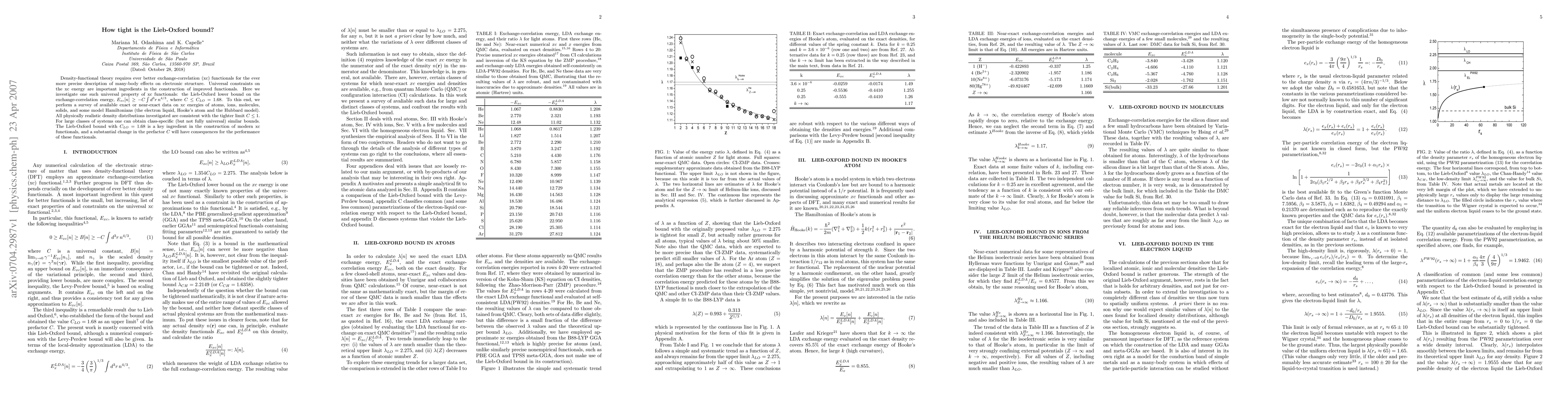 This paper investigates the Lieb-Oxford lower bound for exchange-correlation energy in density-functional theory, finding that all physically realistic density distributions support the tighter limit $C \leq 1$, challenging the conventional bound $C_{LO}=1.68$. This tighter bound could significantly impact the performance of modern exchange-correlation functionals.