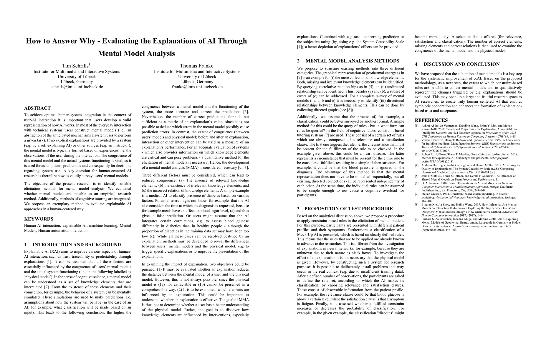To achieve optimal human-system integration in the context of user-AI interaction it is important that users develop a valid representation of how AI works. In most of the everyday interaction with technical systems users construct mental models (i.e., an abstraction of the anticipated mechanisms a system uses to perform a given task). If no explicit explanations are provided by a system (e.g. by a self-explaining AI) or other sources (e.g. an instructor), the mental model is typically formed based on experiences, i.e. the observations of the user during the interaction. The congruence of this mental model and the actual systems functioning is vital, as it is used for assumptions, predictions and consequently for decisions regarding system use. A key question for human-centered AI research is therefore how to validly survey users' mental models. The objective of the present research is to identify suitable elicitation methods for mental model analysis. We evaluated whether mental models are suitable as an empirical research method. Additionally, methods of cognitive tutoring are integrated. We propose an exemplary method to evaluate explainable AI approaches in a human-centered way.