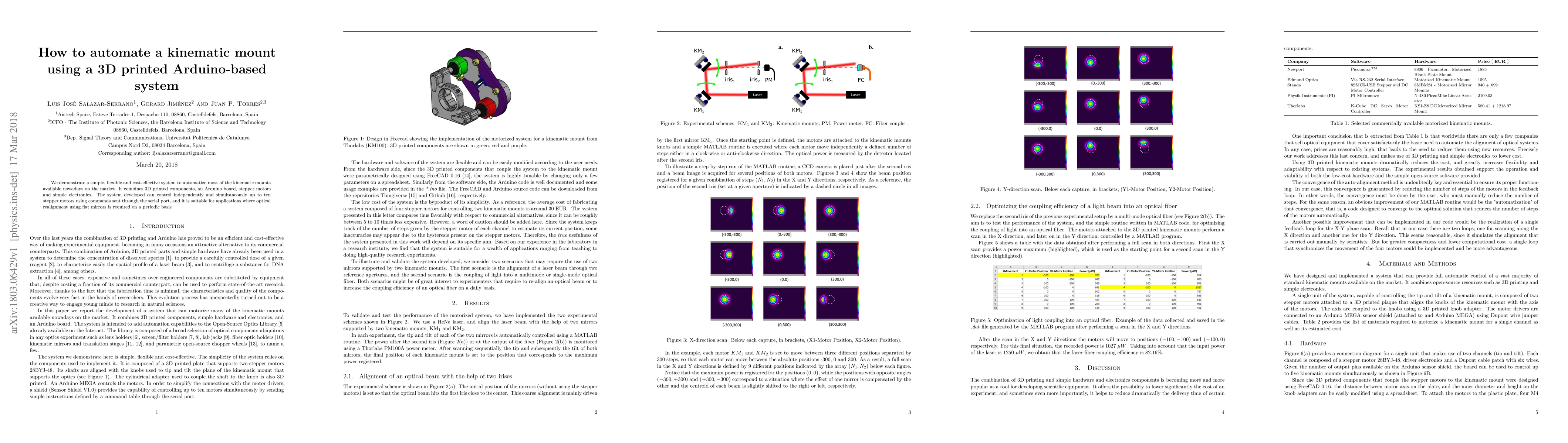 Researchers developed an Arduino-based system using 3D printing to automate a kinematic mount, enabling control of up to ten stepper motors with serial port commands.
