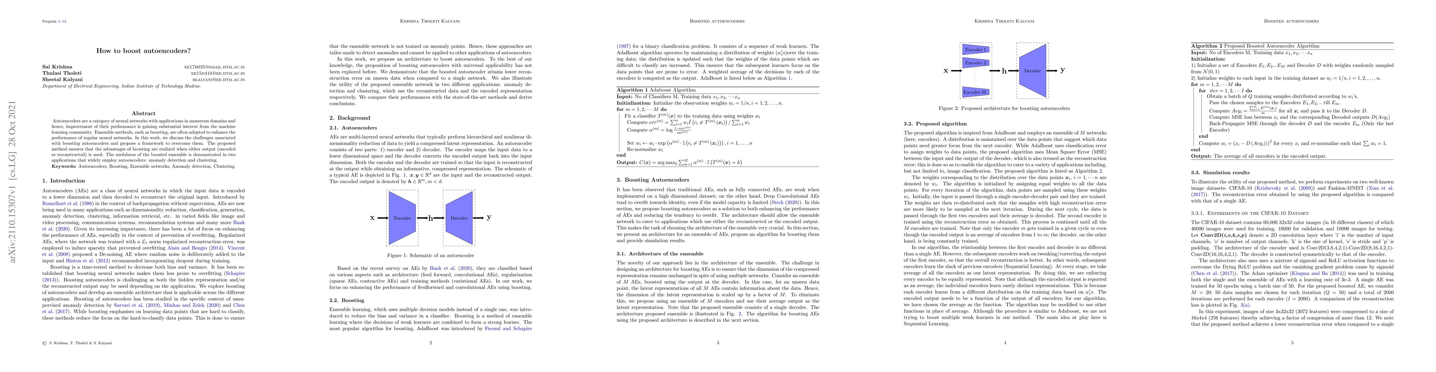 Autoencoders are a category of neural networks with applications in numerous domains and hence, improvement of their performance is gaining substantial interest from the machine learning community. Ensemble methods, such as boosting, are often adopted to enhance the performance of regular neural networks. In this work, we discuss the challenges associated with boosting autoencoders and propose a framework to overcome them. The proposed method ensures that the advantages of boosting are realized when either output (encoded or reconstructed) is used. The usefulness of the boosted ensemble is demonstrated in two applications that widely employ autoencoders: anomaly detection and clustering.