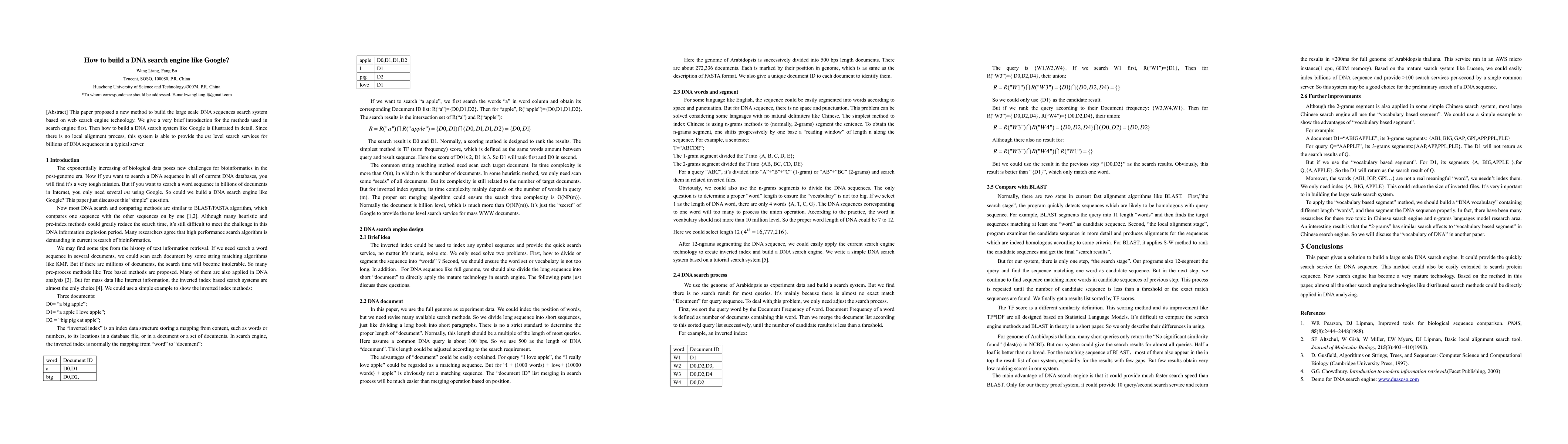 The research introduced a new method for building a large-scale DNA search engine using web search engine technology