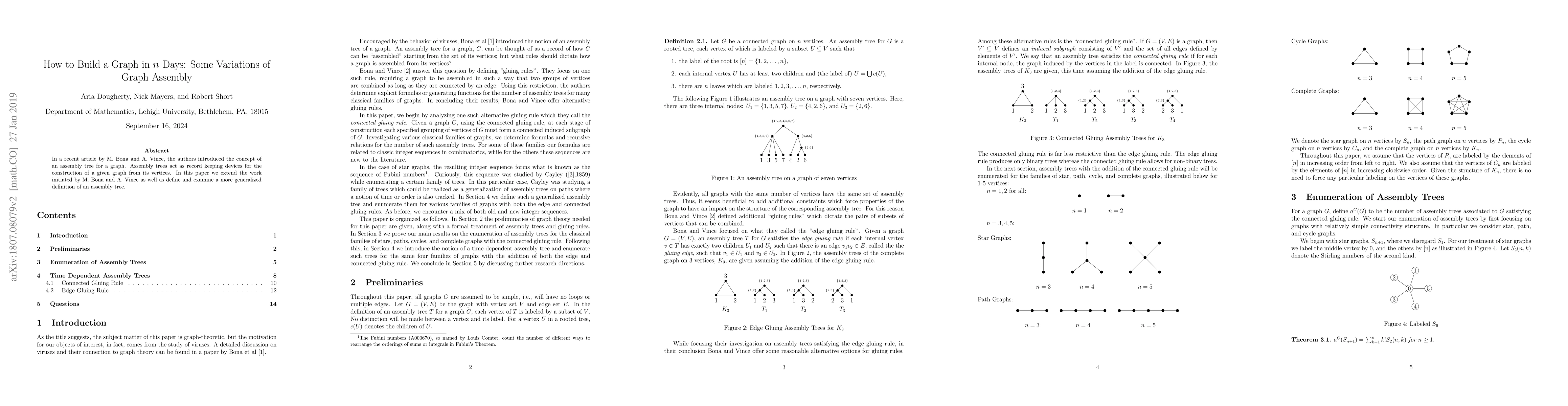 In a recent article by M. Bona and A. Vince, the authors introduced the concept of an assembly tree for a graph. Assembly trees act as record keeping devices for the construction of a given graph from its vertices. In this paper we extend the work initiated by M. Bona and A. Vince as well as define and examine a more generalized definition of assembly tree.