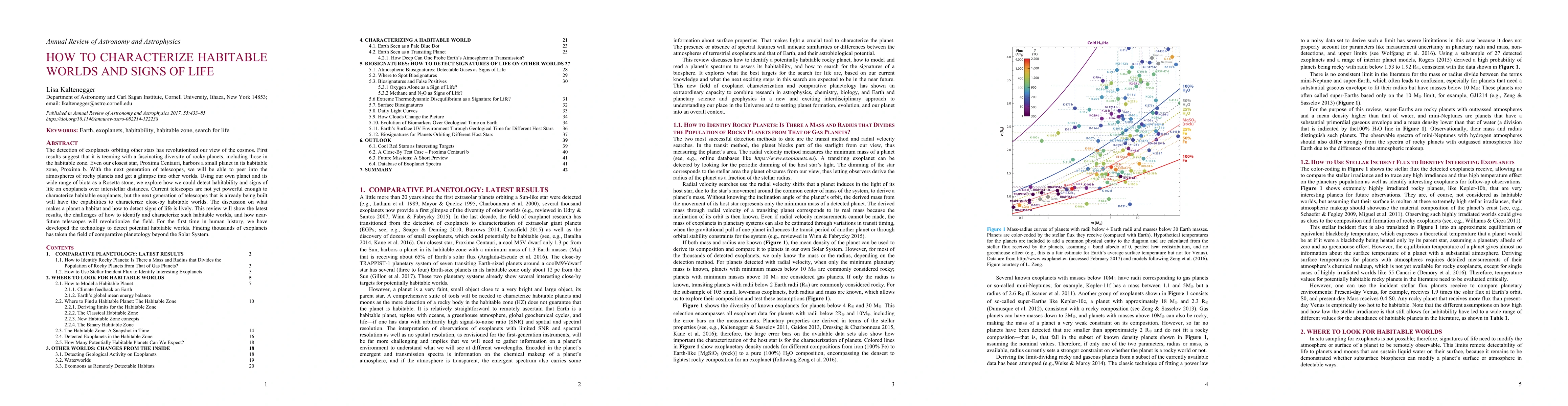 The detection of exoplanets orbiting other stars has revolutionized our view of the cosmos. First results suggest that it is teeming with a fascinating diversity of rocky planets, including those in the habitable zone. Even our closest star, Proxima Centauri, harbors a small planet in its habitable zone, Proxima b. With the next generation of telescopes, we will be able to peer into the atmospheres of rocky planets and get a glimpse into other worlds. Using our own planet and its wide range of biota as a Rosetta stone, we explore how we could detect habitability and signs of life on exoplanets over interstellar distances. Current telescopes are not yet powerful enough to characterize habitable exoplanets, but the next generation of telescopes that is already being built will have the capabilities to characterize close-by habitable worlds. The discussion on what makes a planet a habitat and how to detect signs of life is lively. This review will show the latest results, the challenges of how to identify and characterize such habitable worlds, and how near-future telescopes will revolutionize the field. For the first time in human history, we have developed the technology to detect potential habitable worlds. Finding thousands of exoplanets has taken the field of comparative planetology beyond the Solar System.