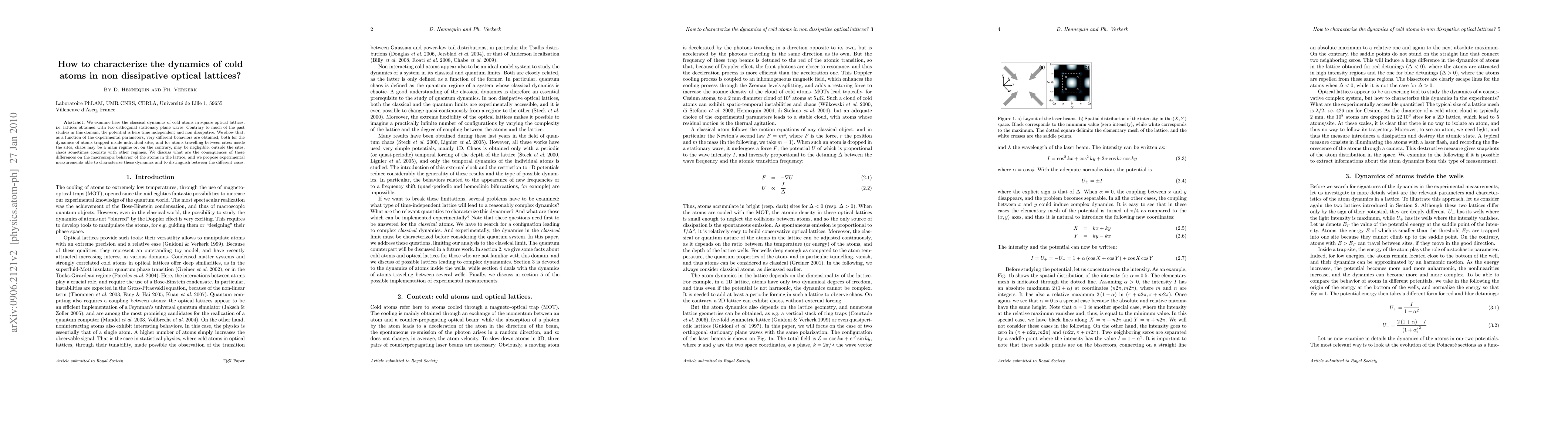 This paper investigates the dynamics of cold atoms in time-independent, non-dissipative optical lattices, revealing diverse behaviors ranging from chaotic to regular regimes depending on experimental parameters. It proposes experimental methods to characterize these dynamics and distinguish between different regimes.